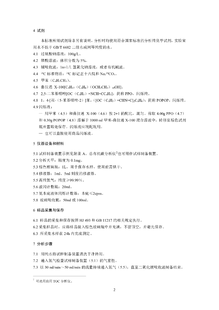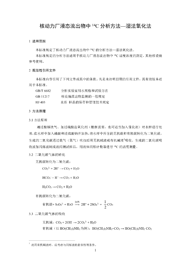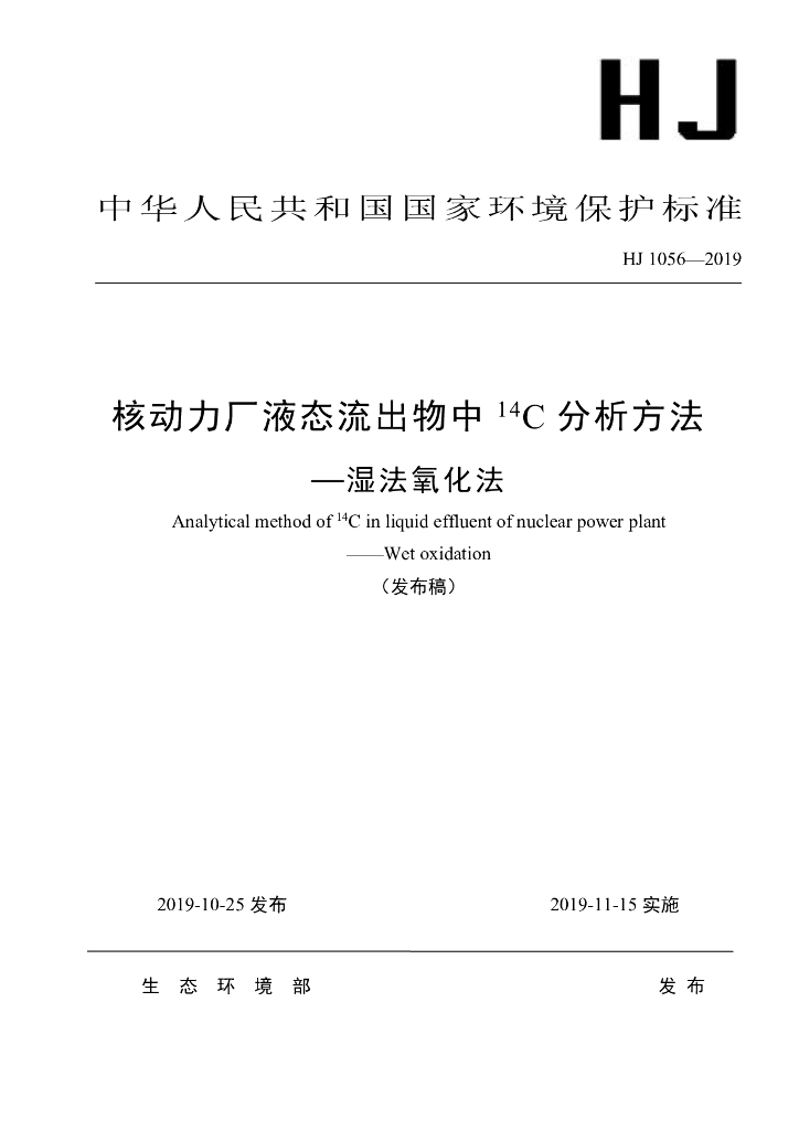 HJ 1056-2019 核动力厂液态流出物中14C分析方法-湿法氧化法