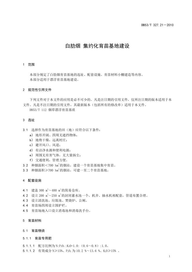 DB53/T 327.21-2010 白肋烟 集约化育苗基地建设