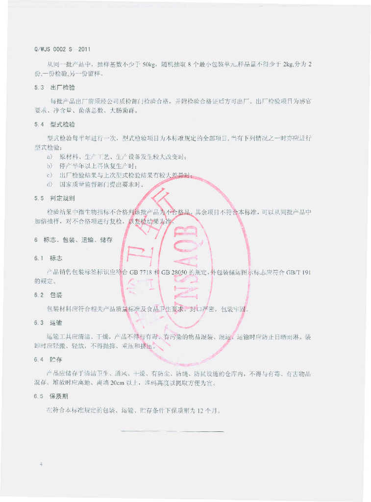Q/WJS 0003S-2012 豆沙馅
