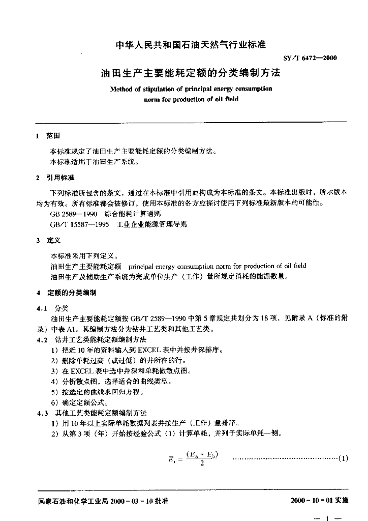 SY/T 6472-2000 油田生产主要能耗定额的分类编制方法