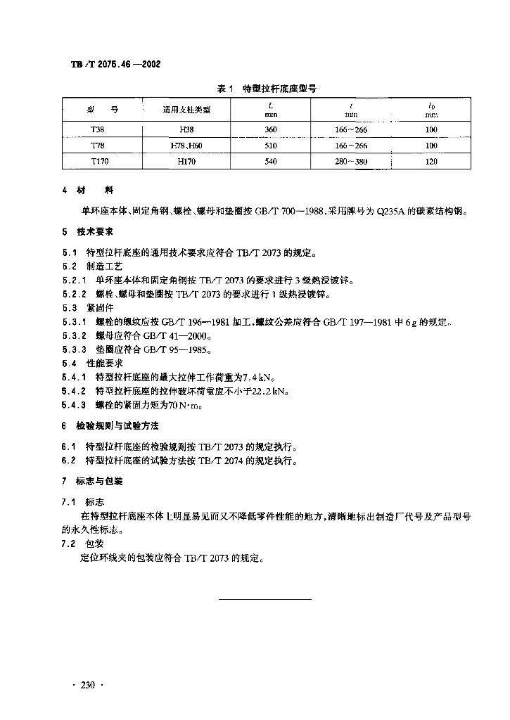 TB/T 2075.46-2002 电气化铁道接触网零部件 第46部分:特型拉杆底座
