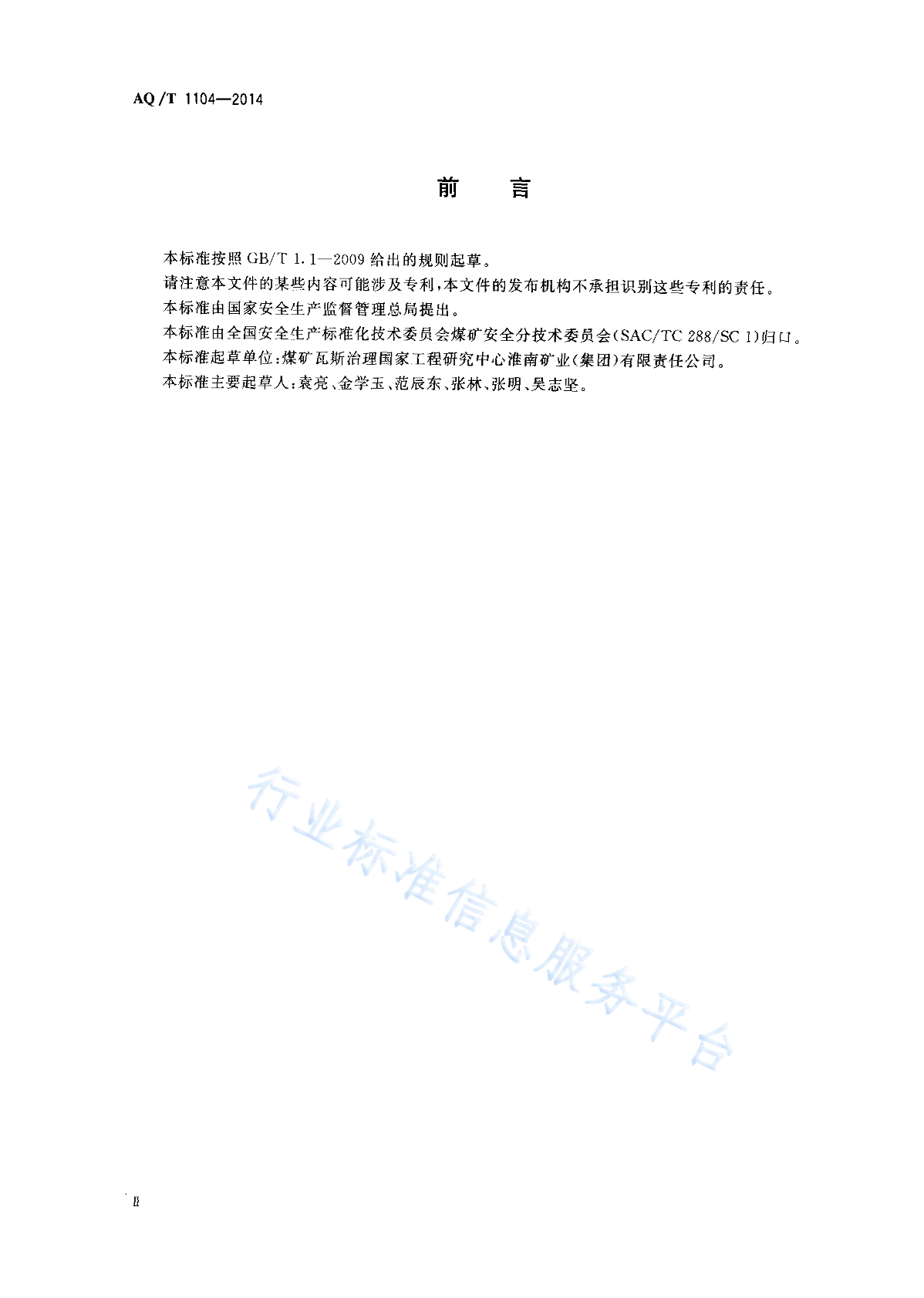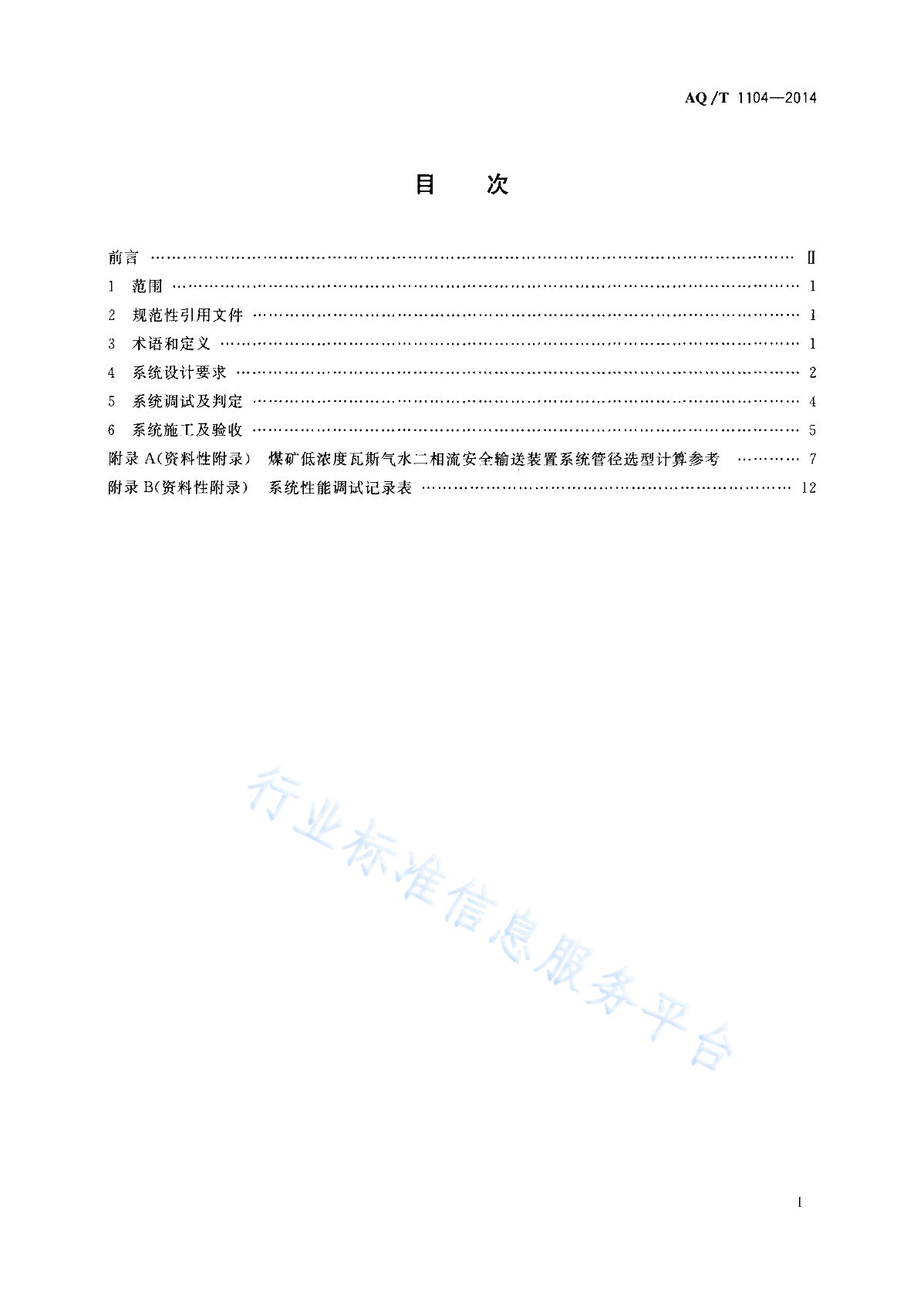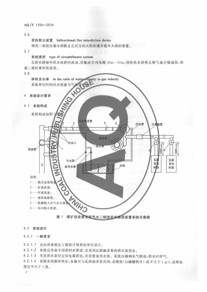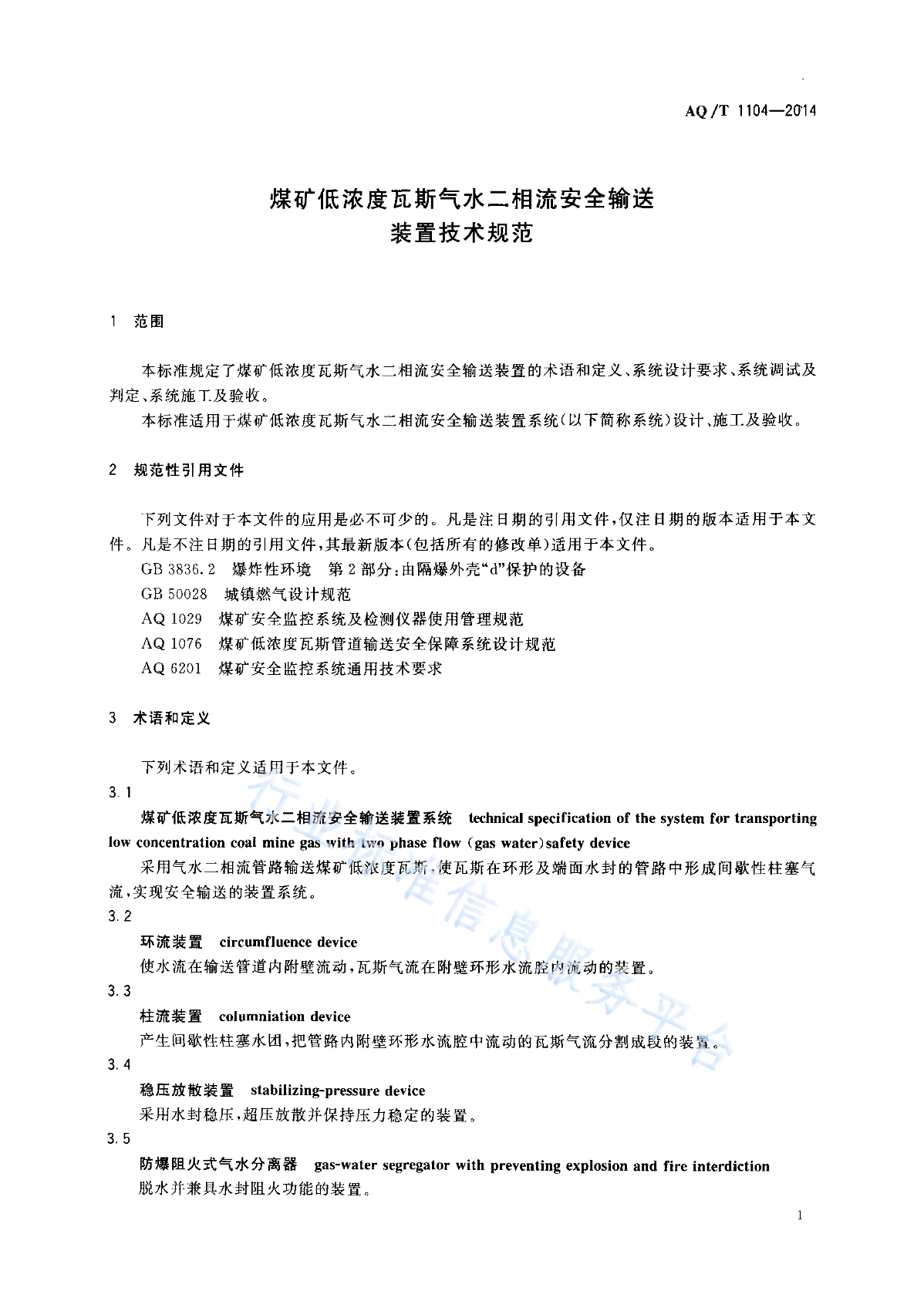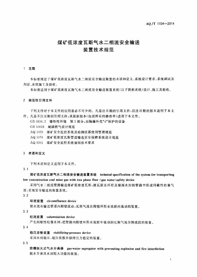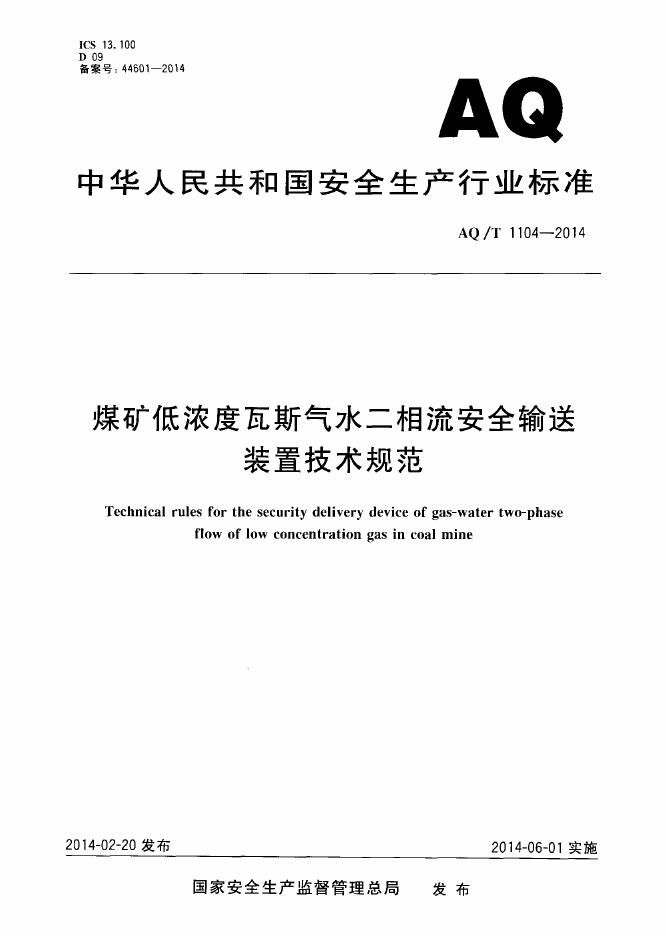 AQ/T 1104-2014 煤矿低浓度瓦斯气水二相流安全输送装置技术规范