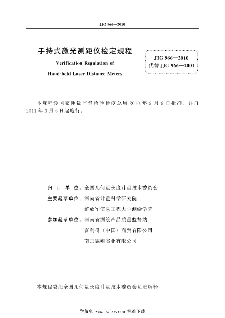 - 代替标准:JJG 966-2001