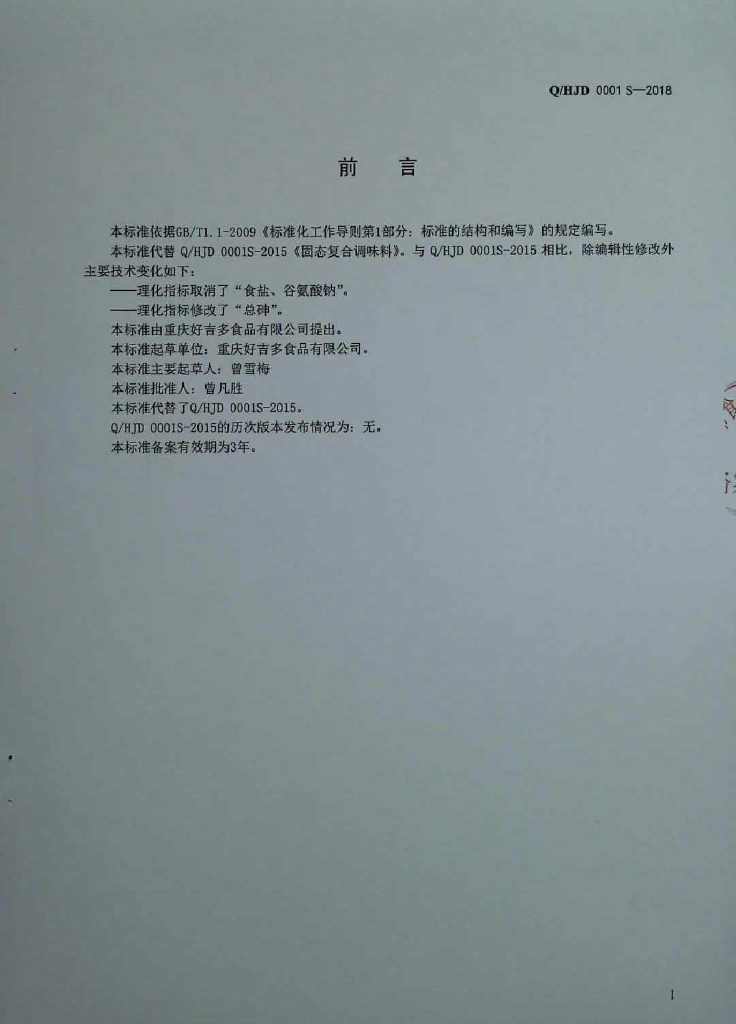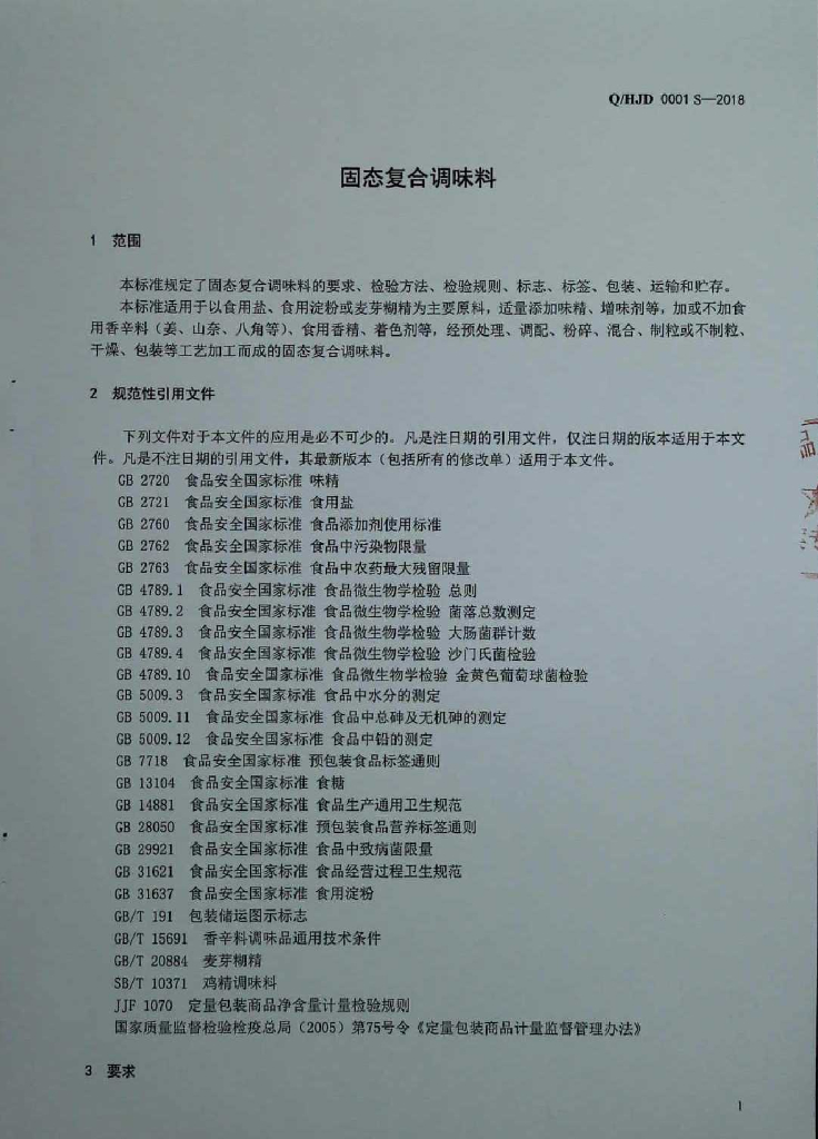 Q/HJD 0001S-2018 固态复合调味料