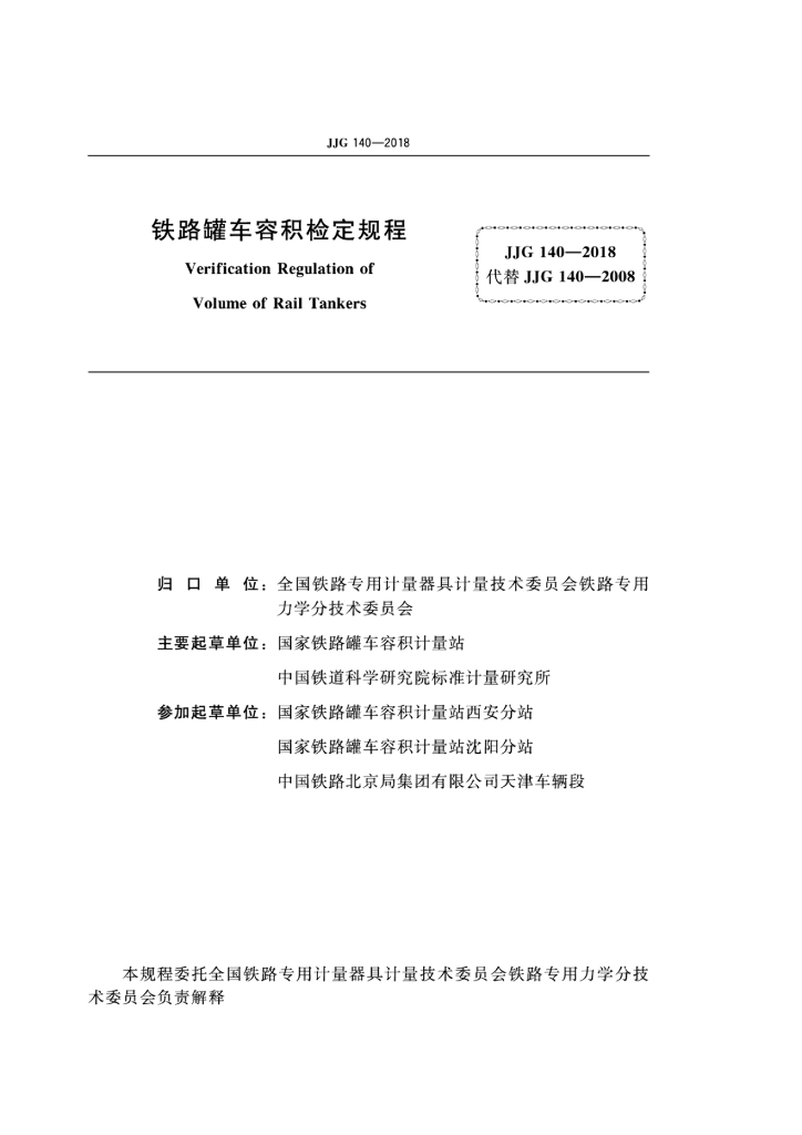 国家铁路罐车容积计量站、中国铁道科学研究院标准计量研究所、国家铁路罐车容积计量站西安分站、国家铁路罐车容积计量站沈阳分站、中国铁路北京局集团有限公司天津车辆段
