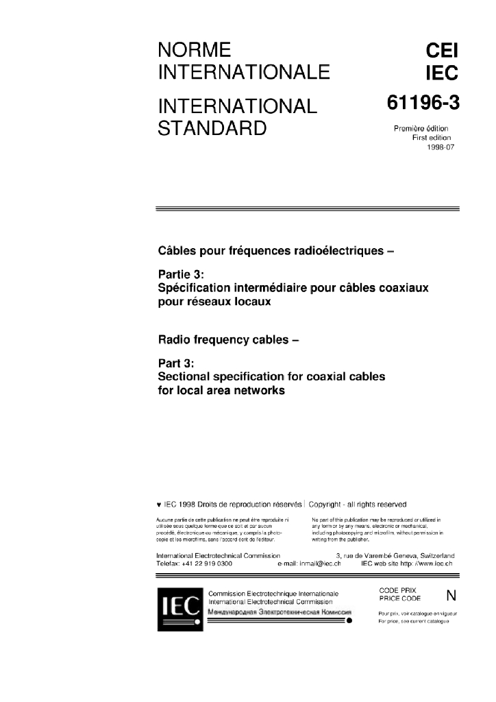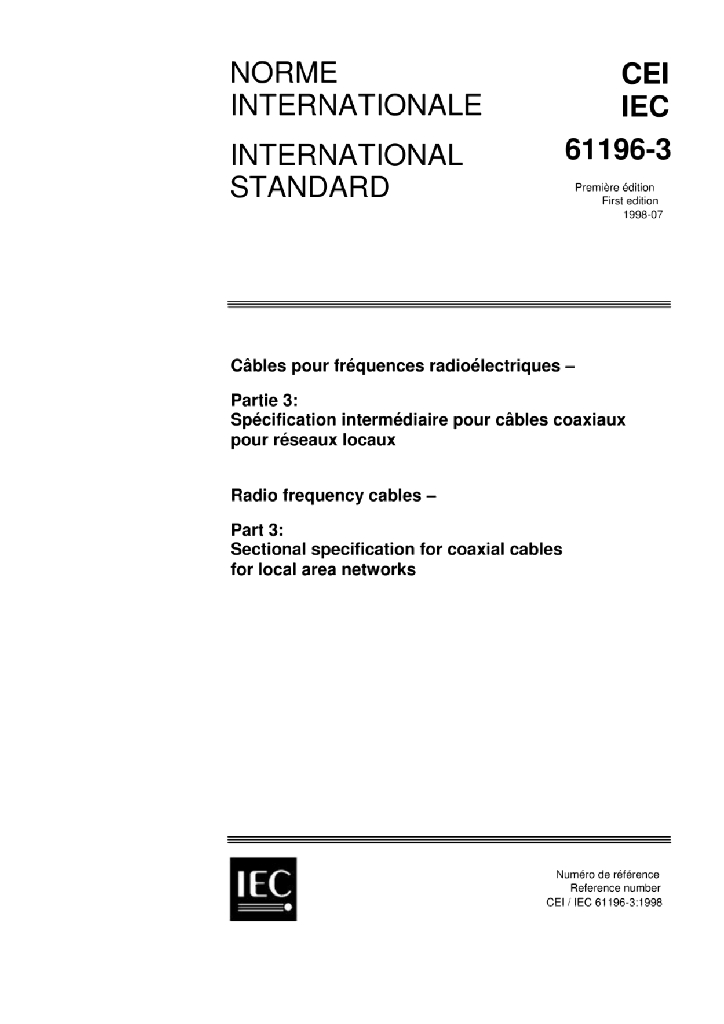 IEC 61196-3:1998 同轴通信电缆 第3部分 局域网用同轴电缆分规范