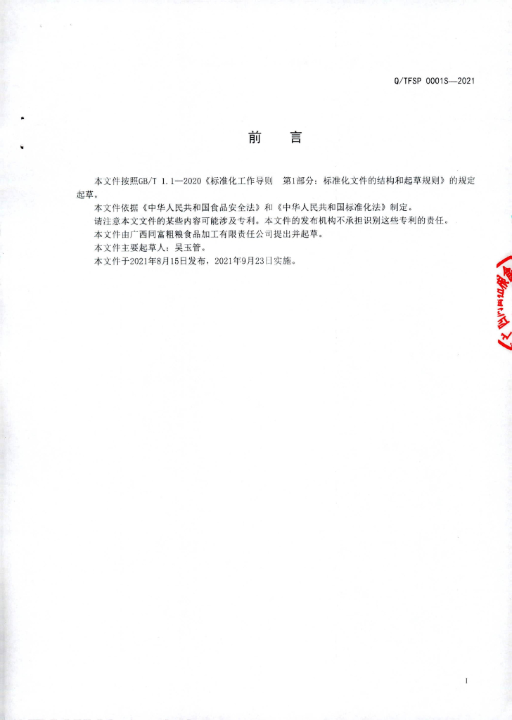 Q/TFSP 0001S-2021 谷物杂粮干粉条