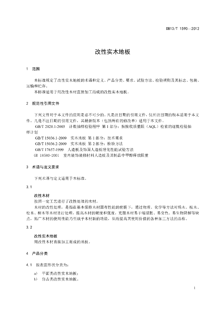 DB13/T 1590-2012 改性实木地板