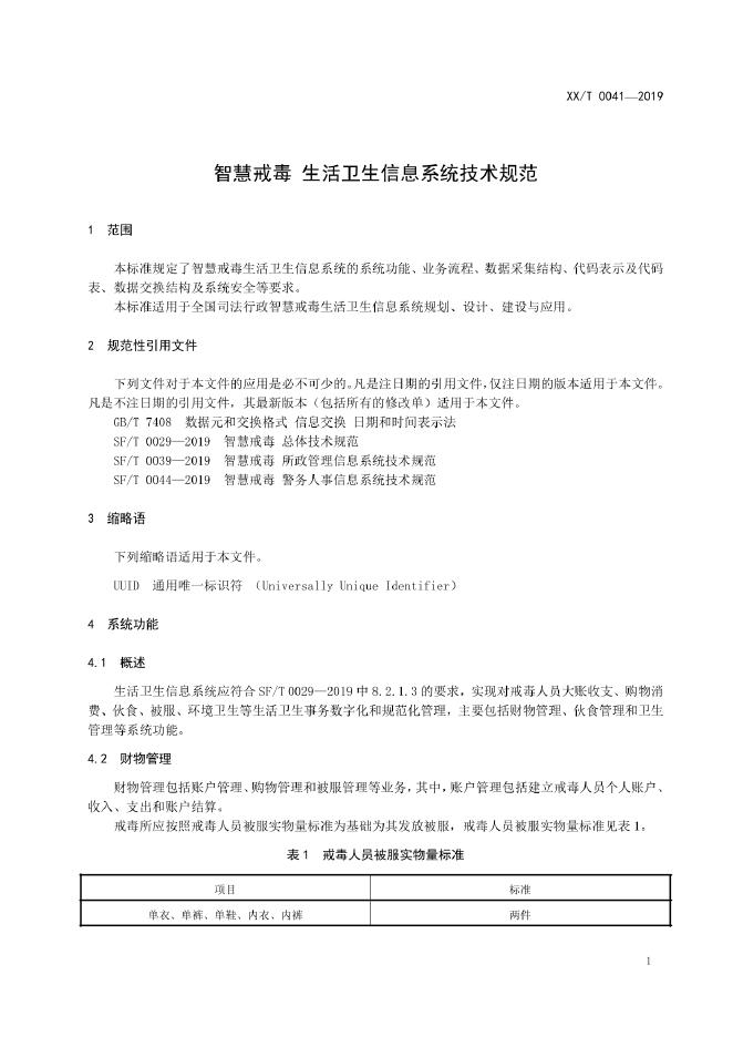 SF/T 0041-2019 智慧戒毒 生活卫生信息系统技术规范
