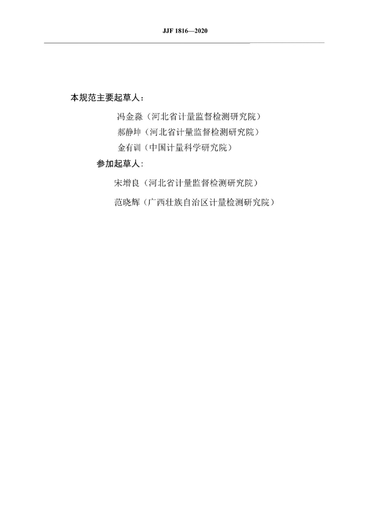 冯金淼(河北省计量监督检测研究院)、郝静坤(河北省计量监督检测研究院)、金有训(中国计量科学研究院)、宋增良(河北省计量监督检测研究院)、范晓辉(广西壮族自治区计量检测研究院)