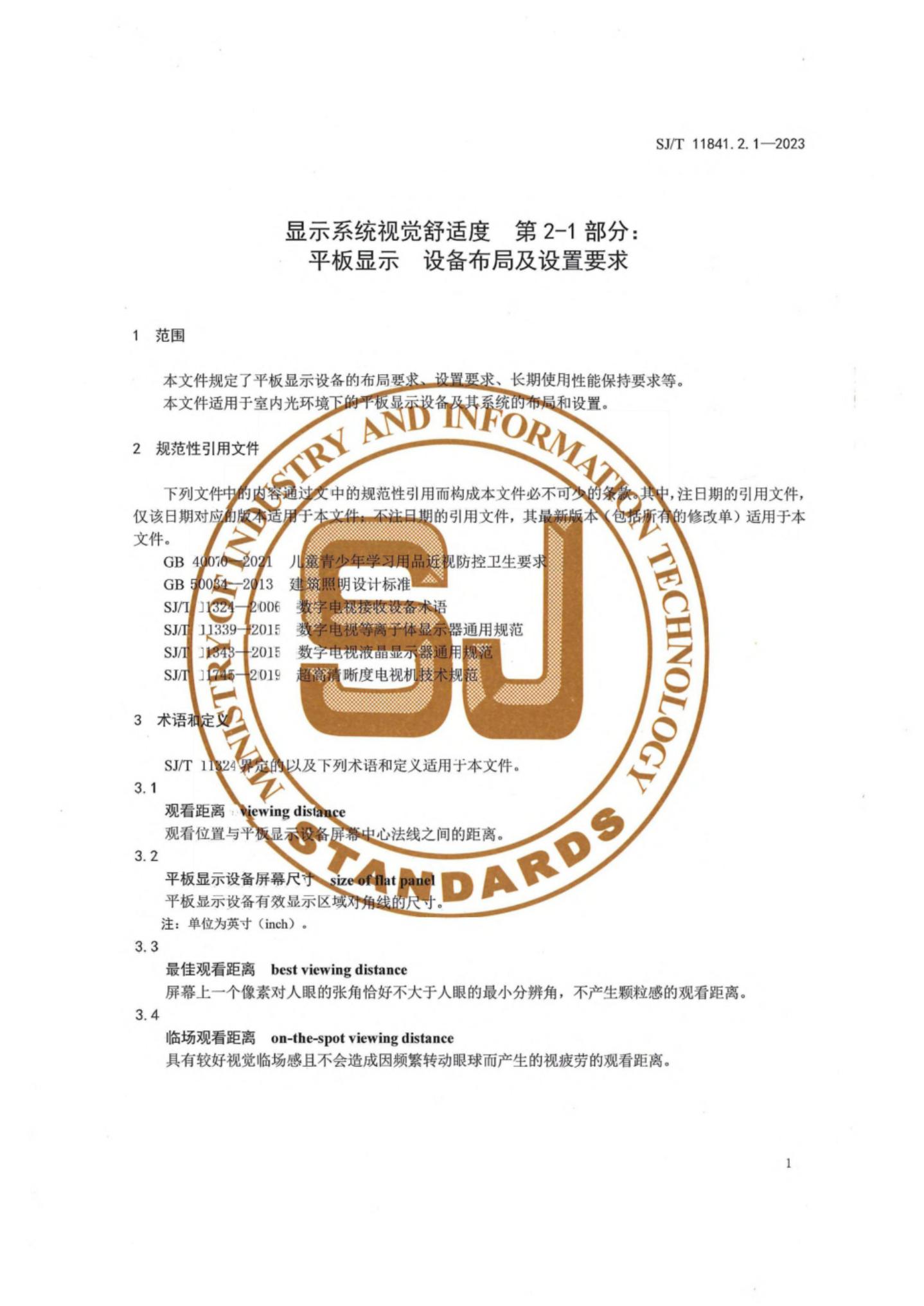 SJ/T 11841.2.1-2023 显示系统视觉舒适度 第2-1部分:平板显示 设备布局及设置要求