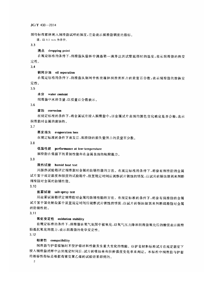 JG/T 430-2014 无粘结预应力筋用防腐润滑脂