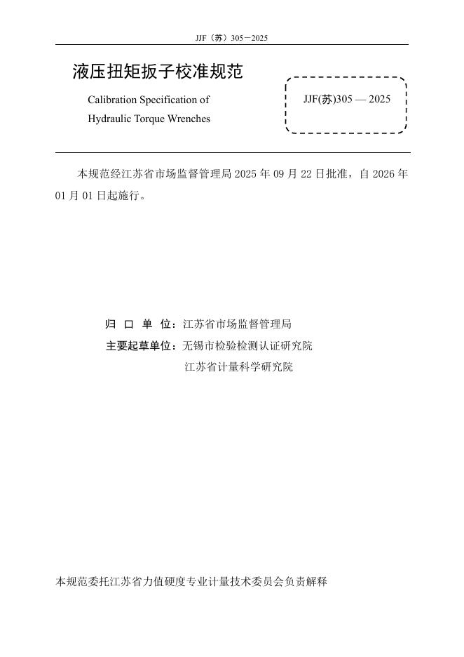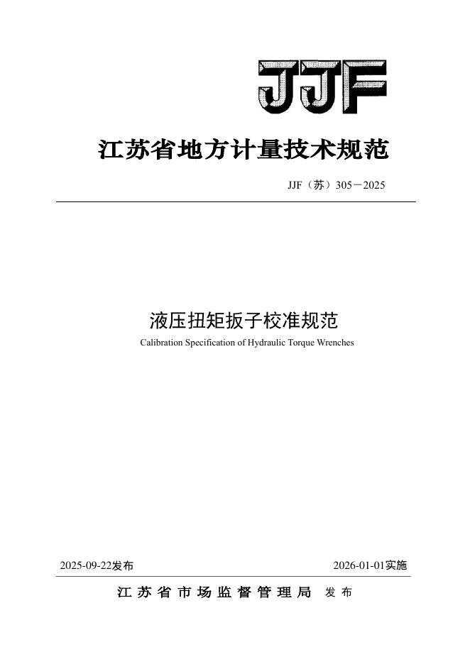JJF(苏)305-2025 液压扭矩扳子校准规范