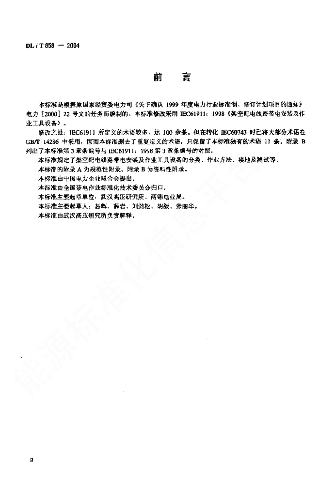 DL/T 858-2004 架空配电线路带电安装及作业工具设备