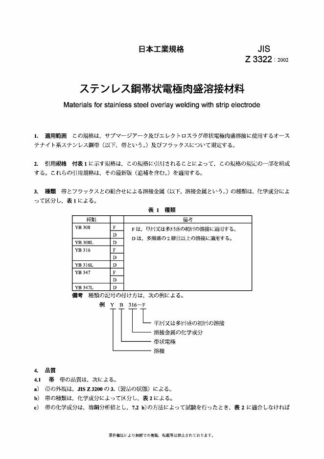 JIS Z3322-2002 用带状电极进行不锈钢搭接焊的材料