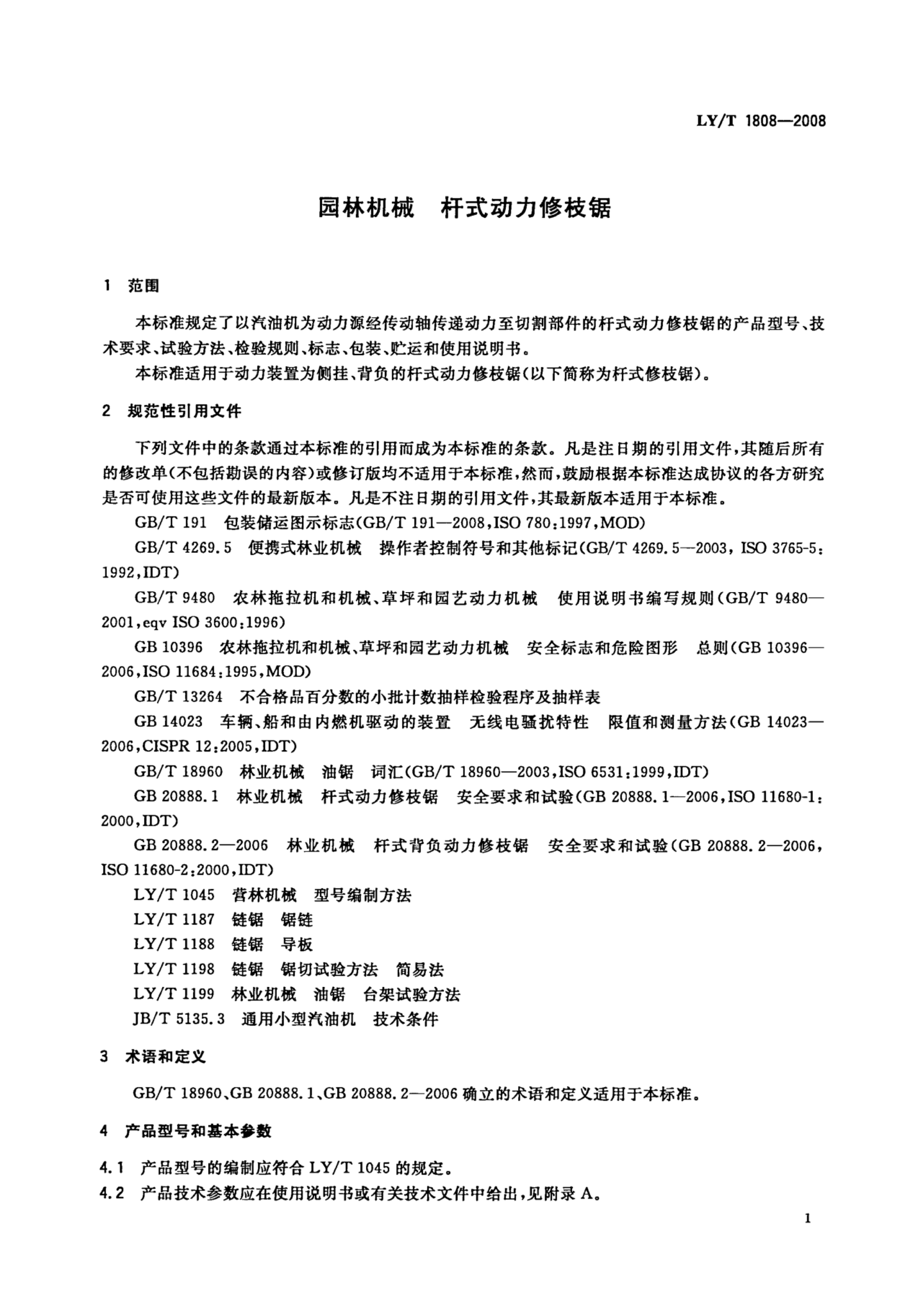 LY/T 1808-2008 园林机械 杆式动力修枝锯