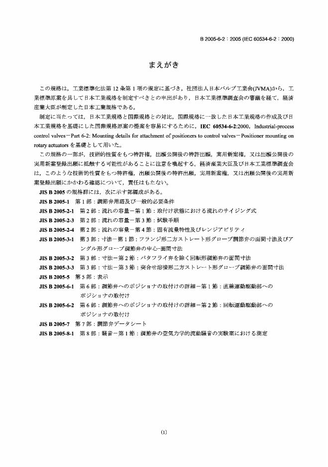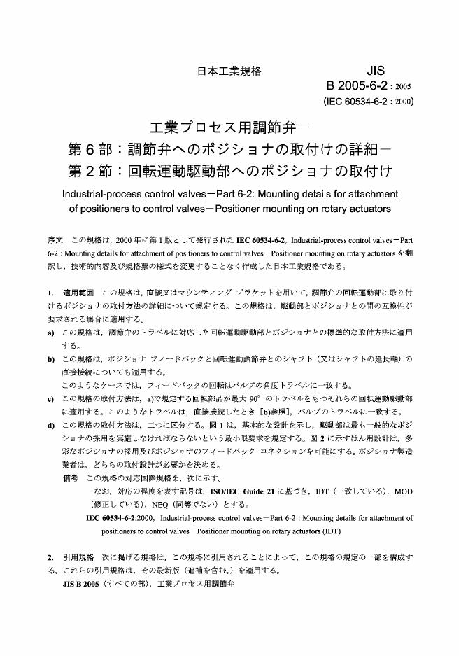 JIS B2005-6-2-2005 Industrial-process control valves-Part 6-2 Mounting details for attachment of positioners to control valves-Positioner mounting on rotary actuators