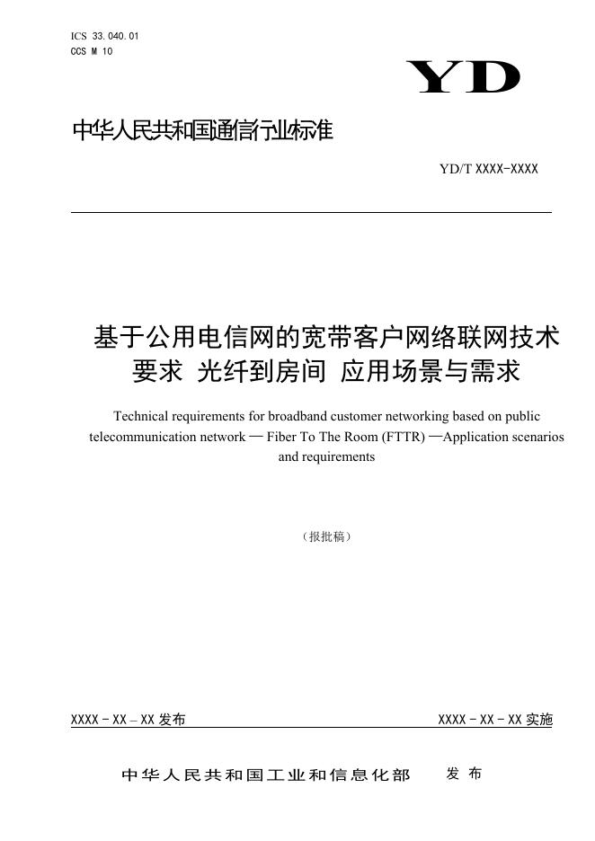 YD/T 6064-2024 基于公用电信网的宽带客户网络联网技术要求 光纤到房间 应用场景与需求