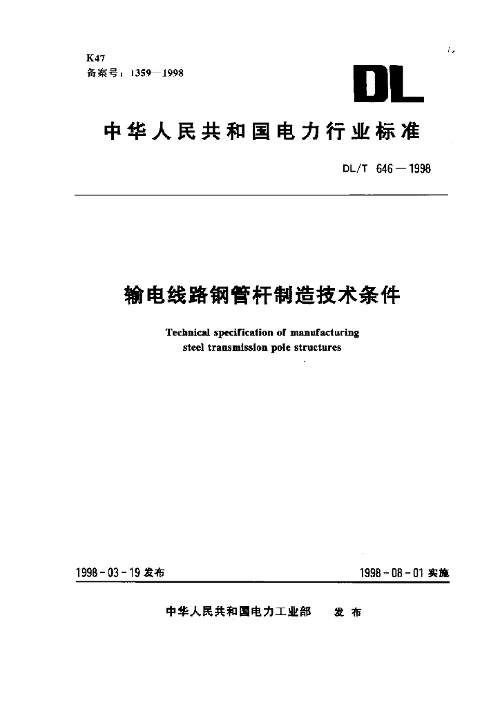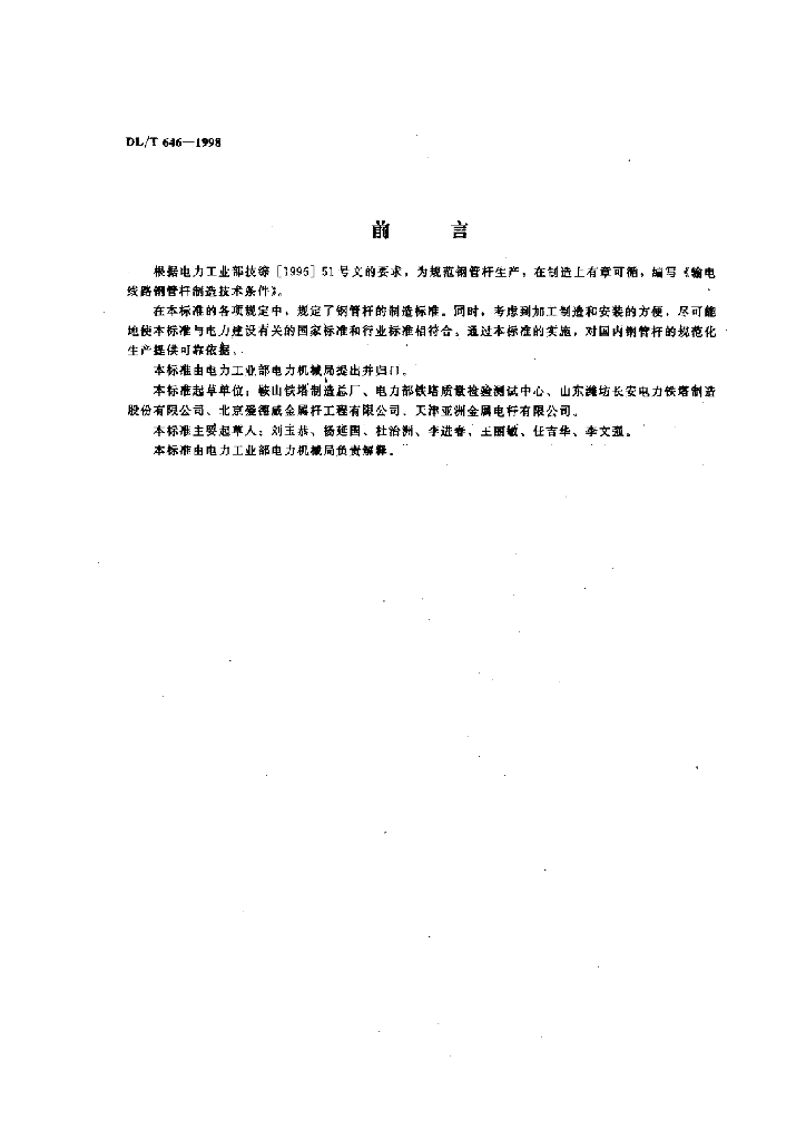 DL/T 646-1998 输电线路钢管杆制造技术条件
