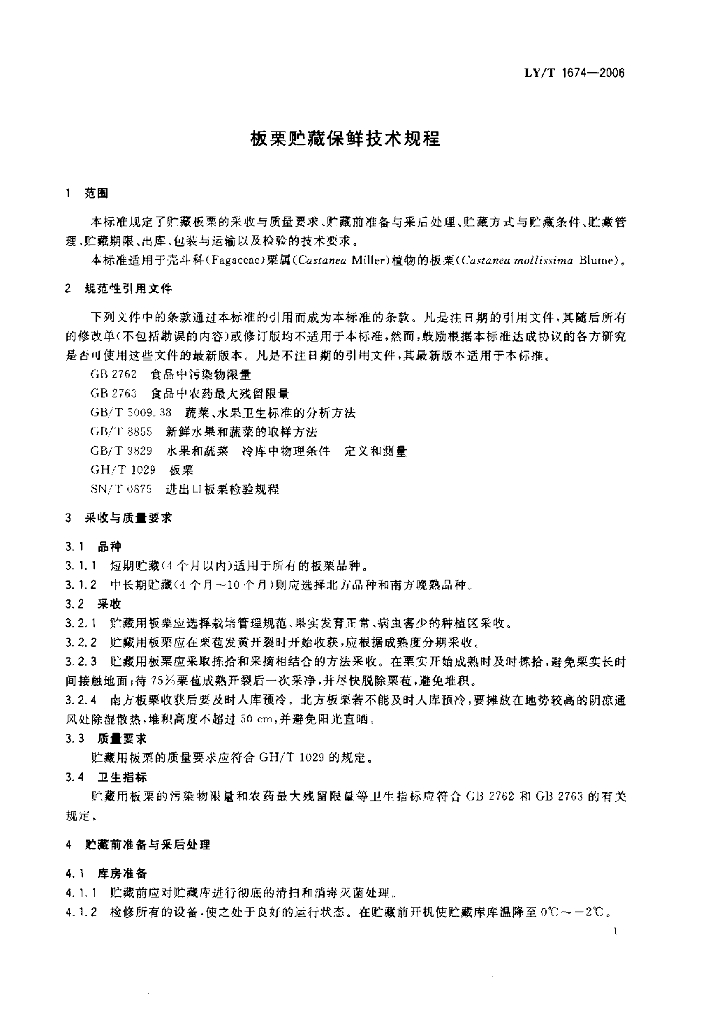 LY/T 1674-2006 板栗贮藏保鲜技术规程