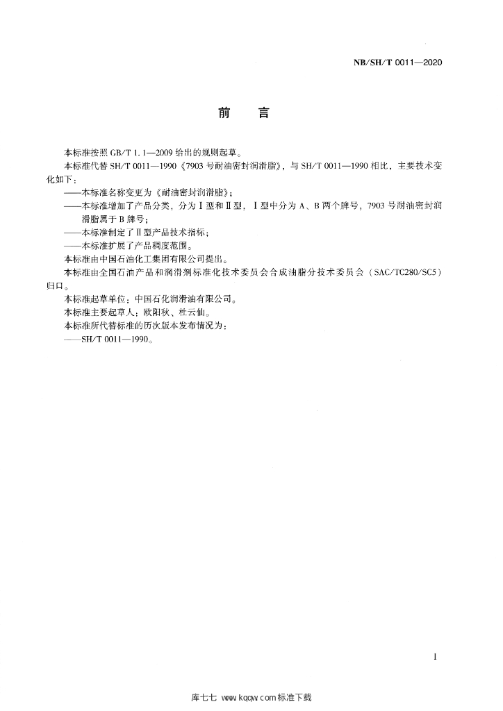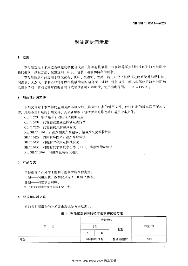 NB/SH/T 0011-2020 耐油密封润滑脂