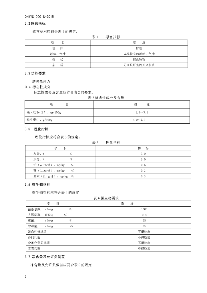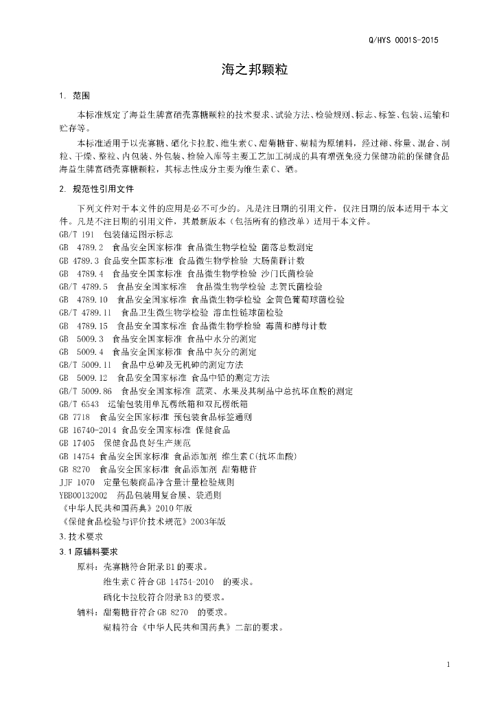 Q/HYS 0001S-2015 济南海益生生物技术有限公司 保健食品 海之邦颗粒