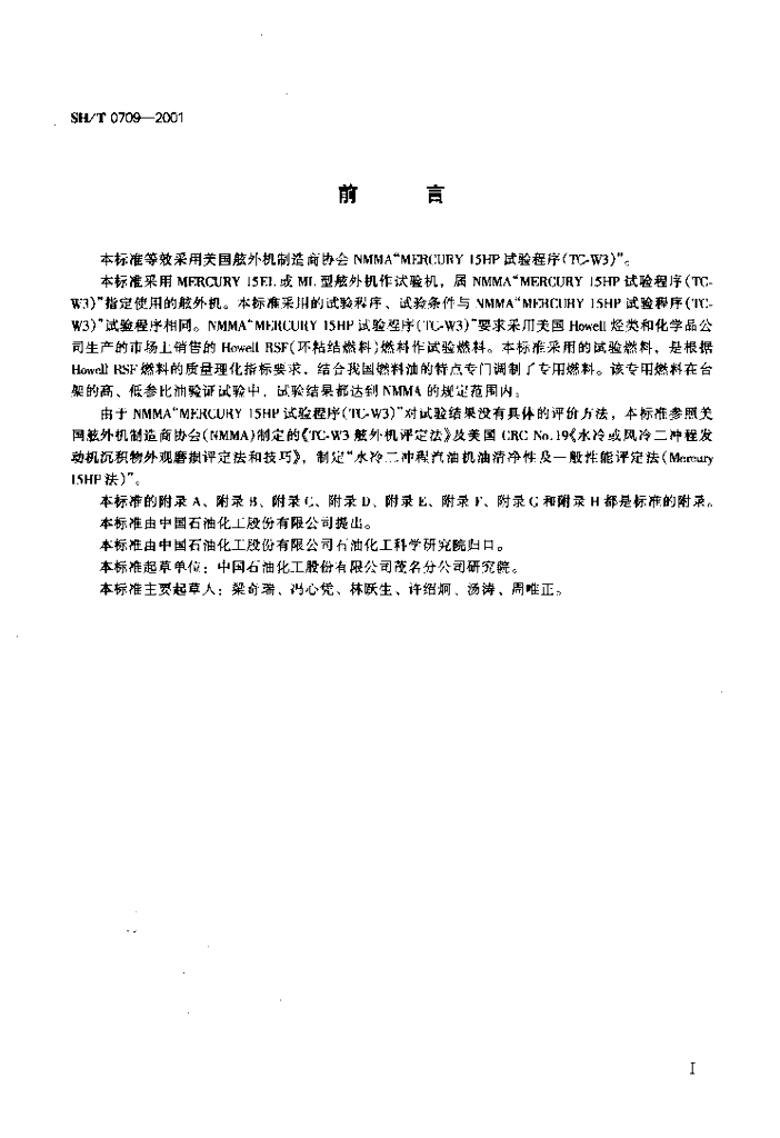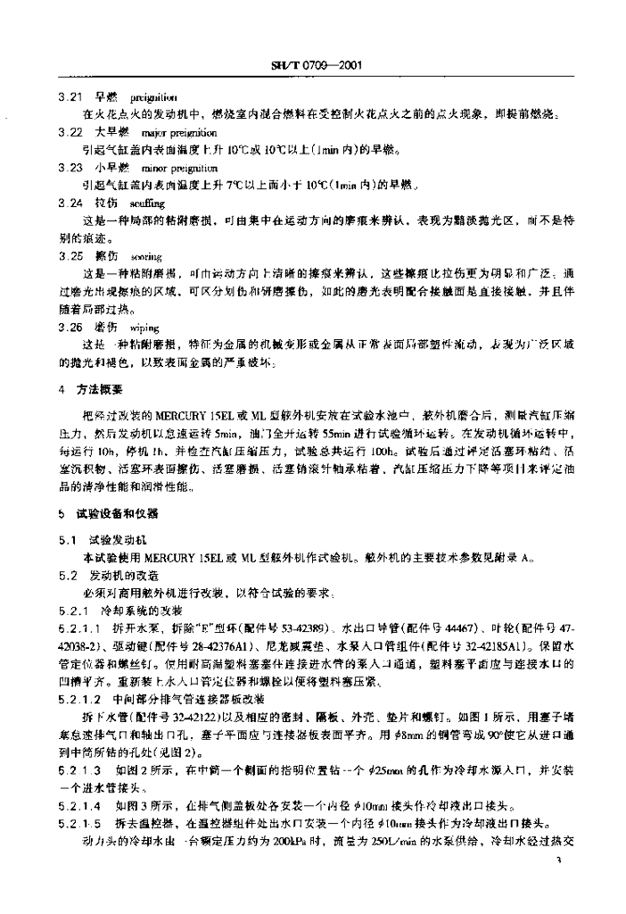 SH/T 0709-2001 水冷二冲程汽油机油清净性及一般性能评定法(Mercury15HP法)