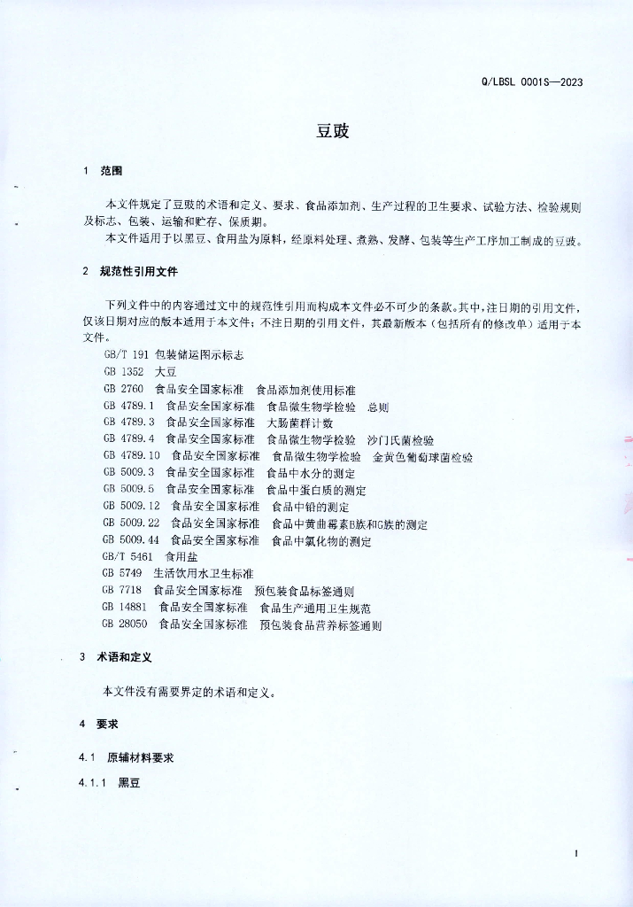 Q/LBSL 0001S-2023 豆豉