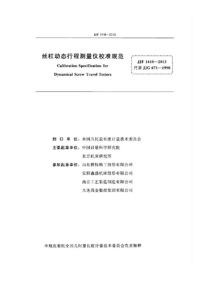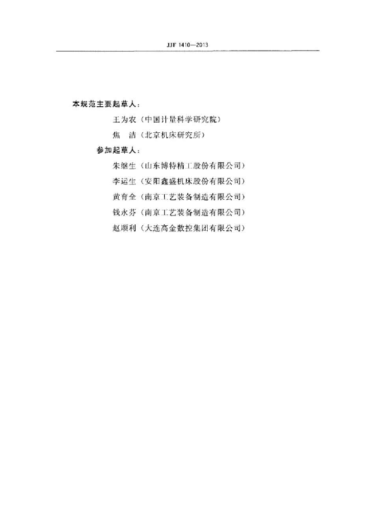 王为农(中国计量科学研究院)、焦洁(北京机床研究所)、朱继生(山东博特精工股份有限公司)、李运生(安阳鑫盛机床股份有限公司)、黄育全(南京工艺装备制造有限公司)、钱永芬(南京工艺装备制造有限公司)、赵顺利(大连高金数控集团有限公司)