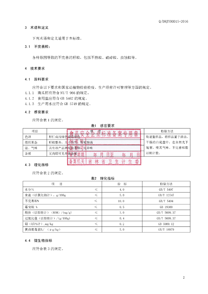 Q/DHJY 0001S-2016 吉林金亚果仁加工有限责任公司 调味南瓜籽仁