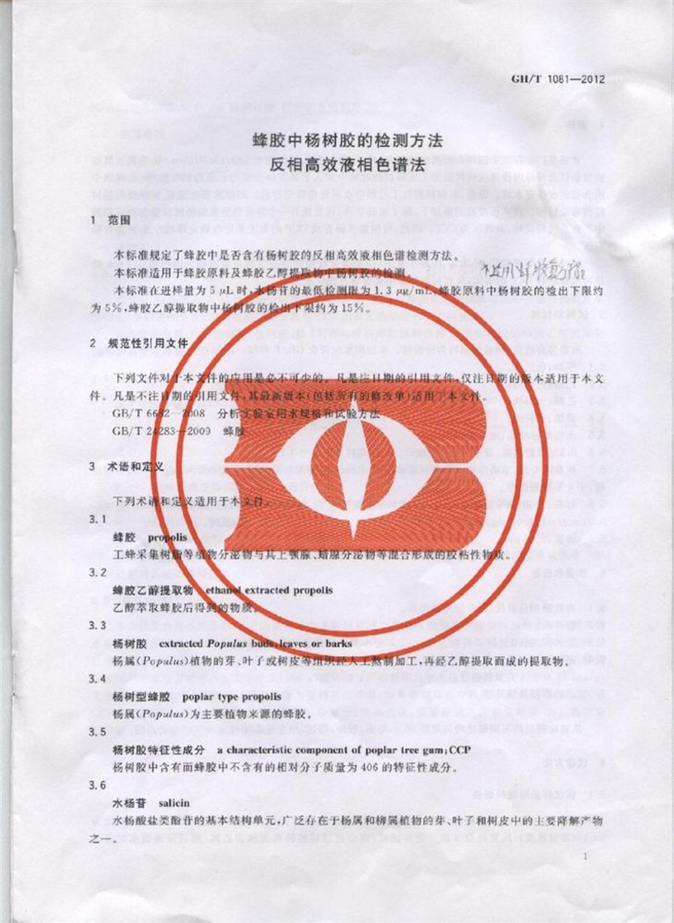 GH/T 1081-2012 蜂胶中杨树胶的检测方法 反相高效液相色谱法