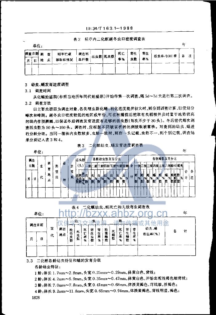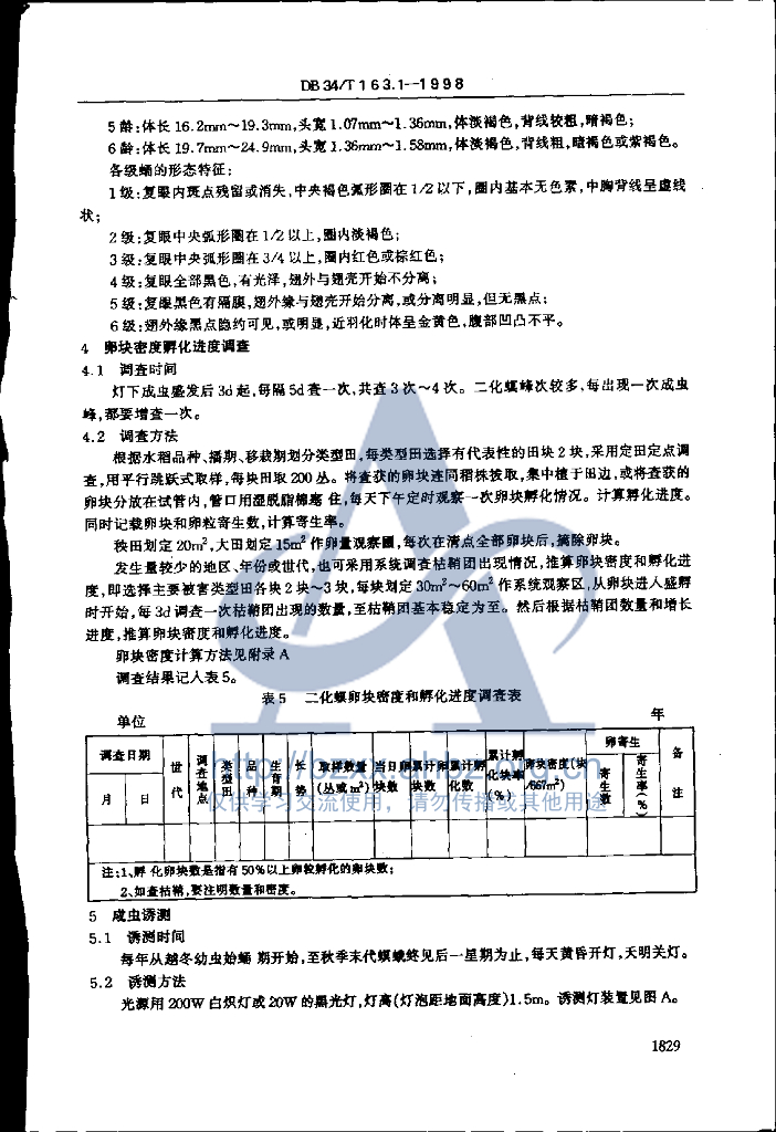 DB34/T 163.1-1998 水稻作物害虫测报调查规范 水稻二化螟