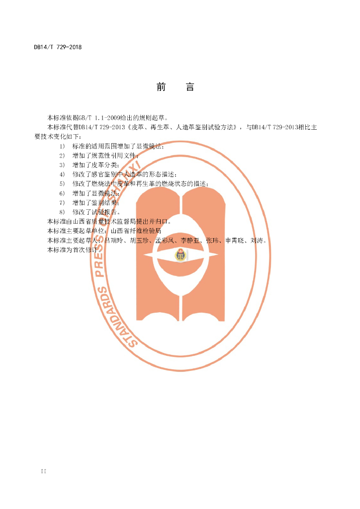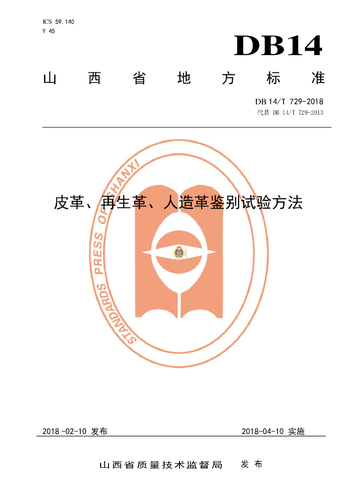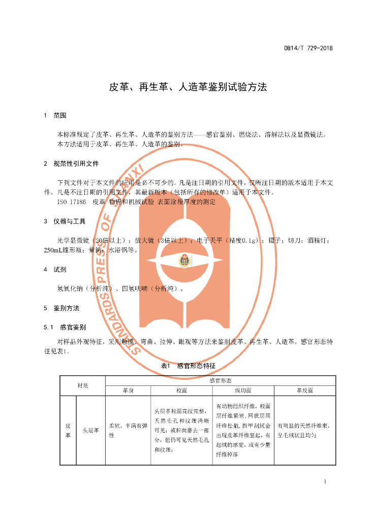 DB14/T 729-2018 皮革、再生革、人造革鉴别试验方法