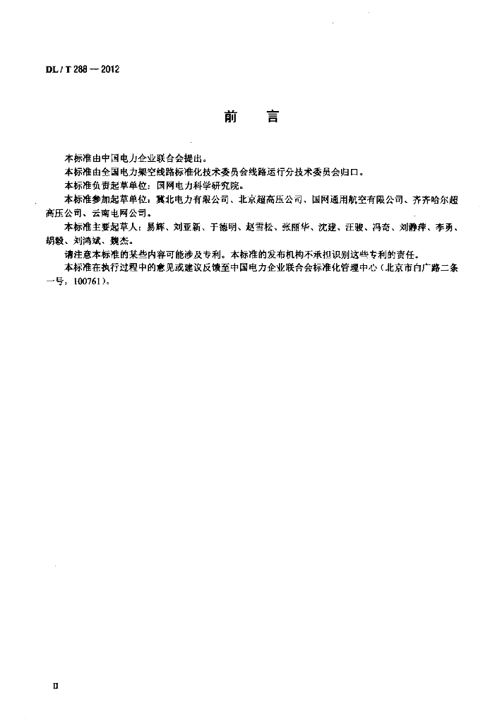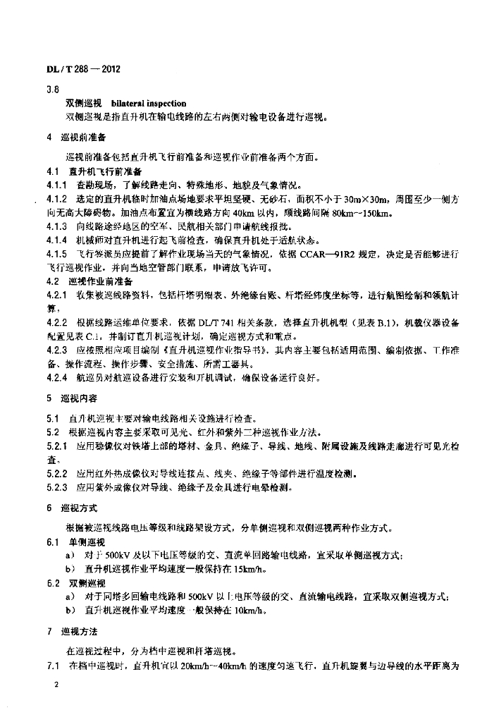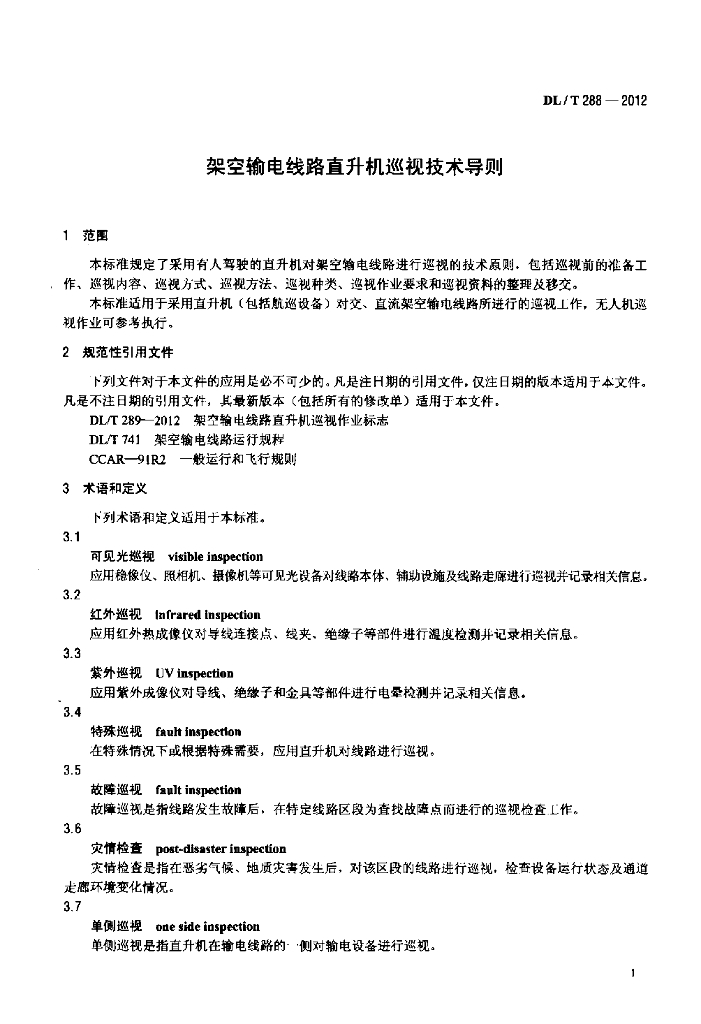 DL/T 288-2012 架空输电线路直升机巡视技术导则