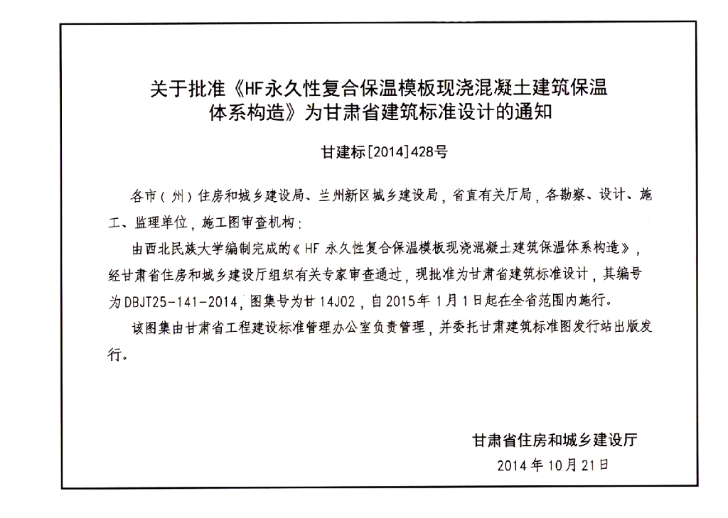 甘14J02(2017版) HF永久性复合保温模板现浇混凝土建筑保温体系构造图集