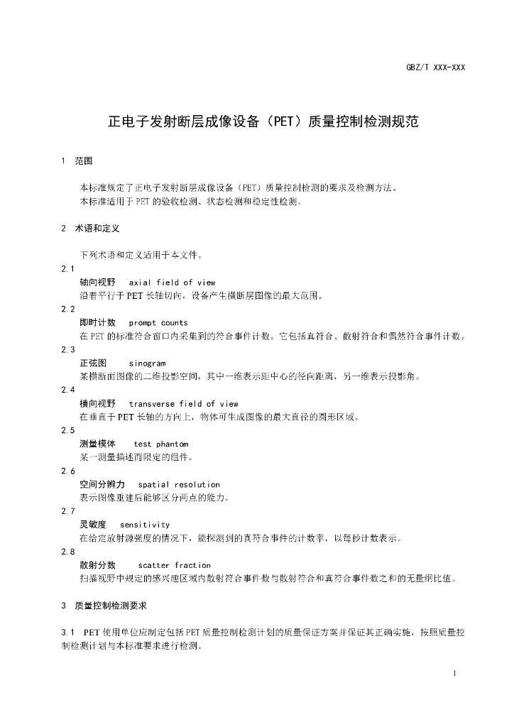 GBZ/T 正电子发射断层成像设备(PET)质量控制检测规范
