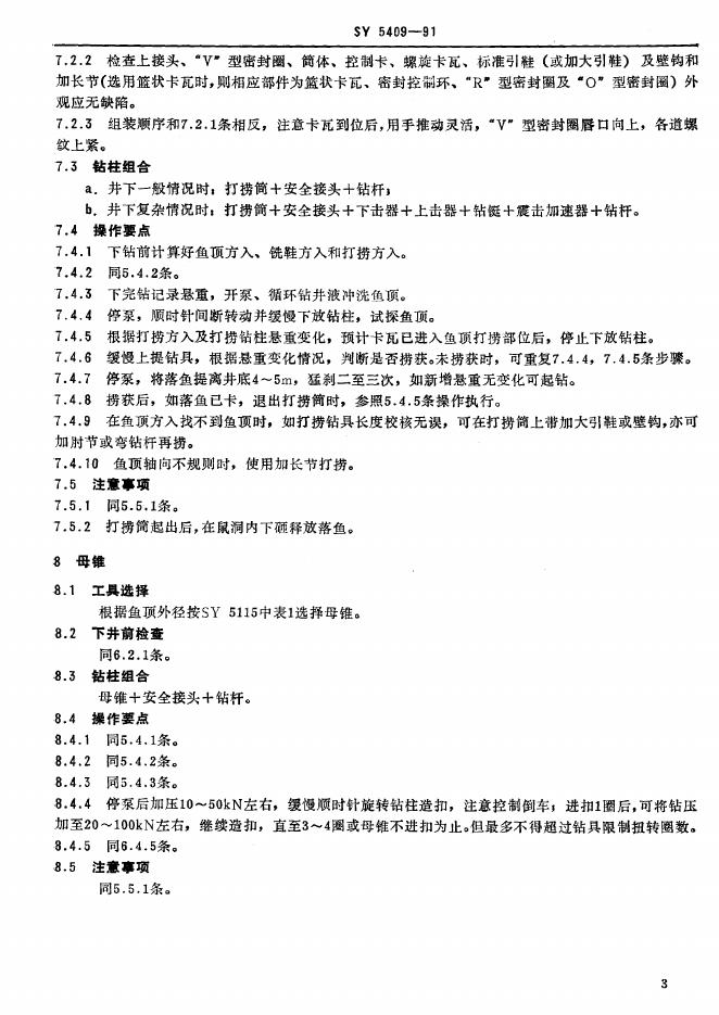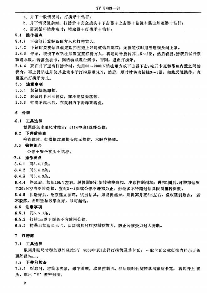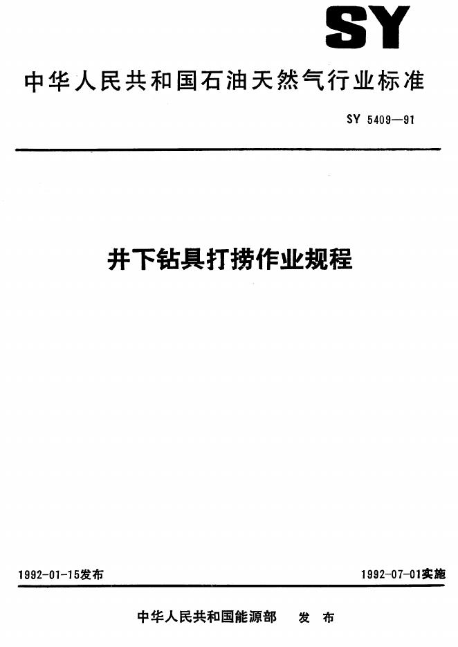 SY 5409-1991 井下钻具打捞作业规程