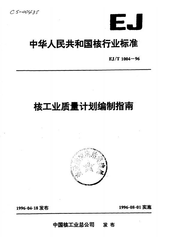 EJ/T 1004-1996 核工业质量计划编制指南