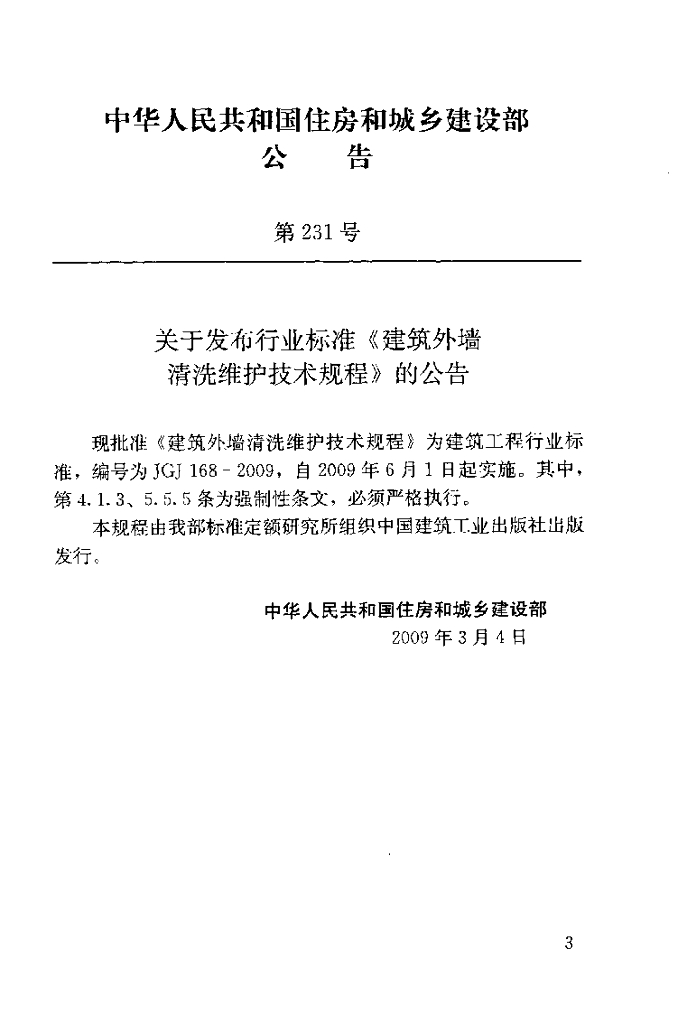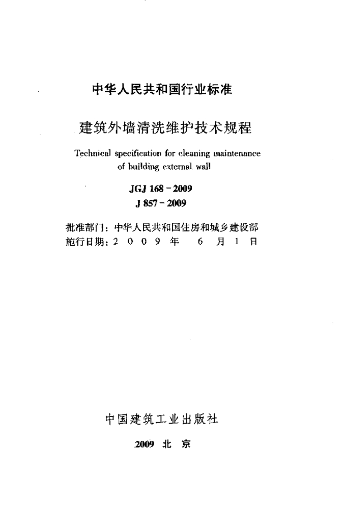 JGJ 168-2009 建筑外墙清洗维护技术规程(附条文说明)