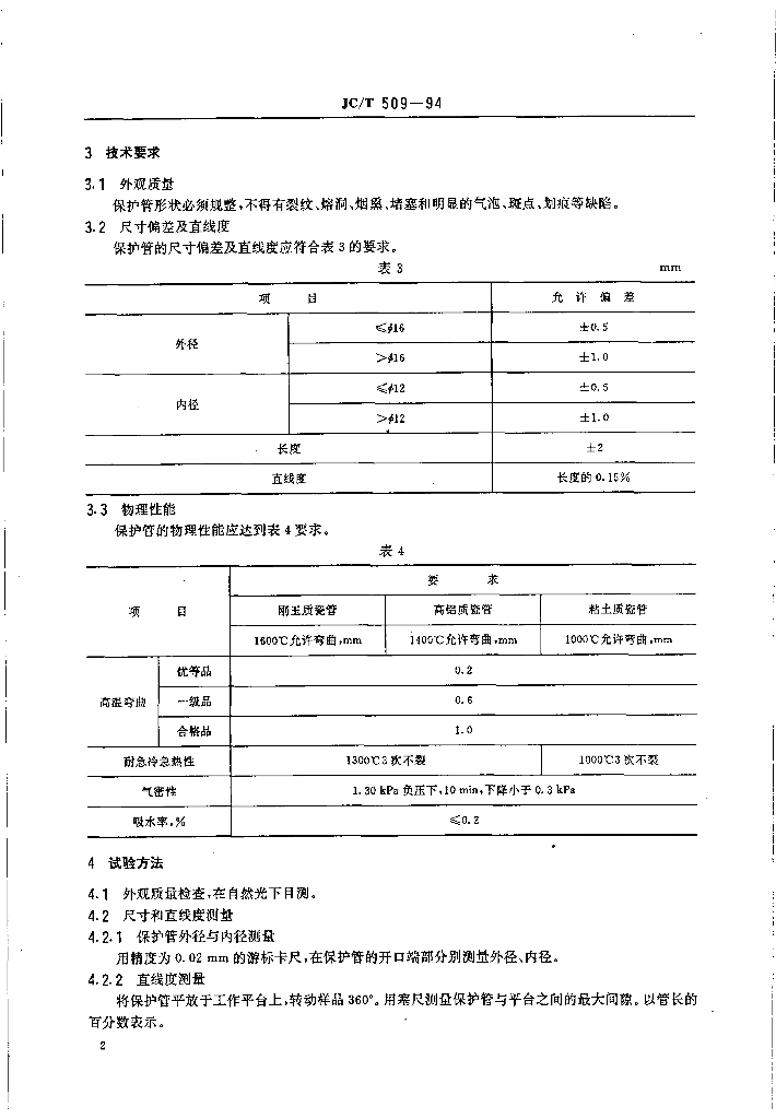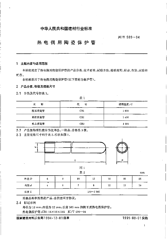 JC/T 509-1994 热电偶用陶瓷保护管