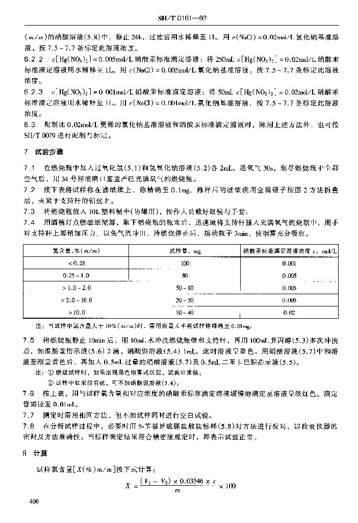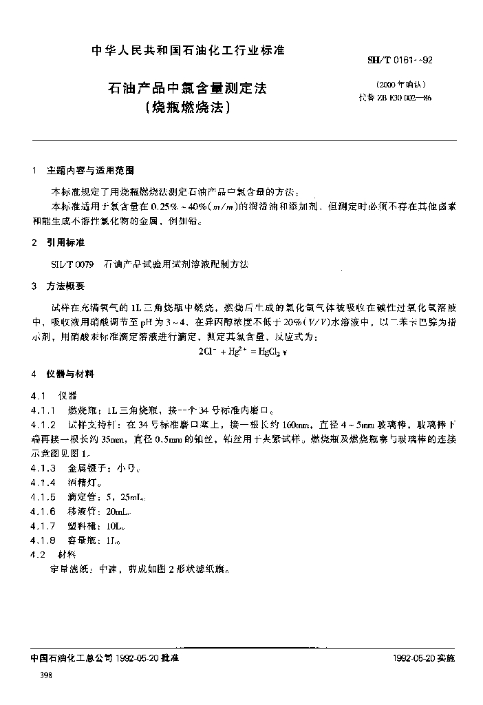 SH/T 0161-1992 石油产品中氯含量测定法(烧瓶燃烧法)