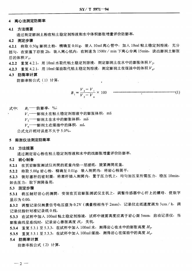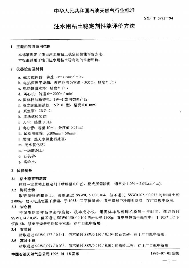 SY/T 5971-1994 注水用粘土稳定剂性能评价方法