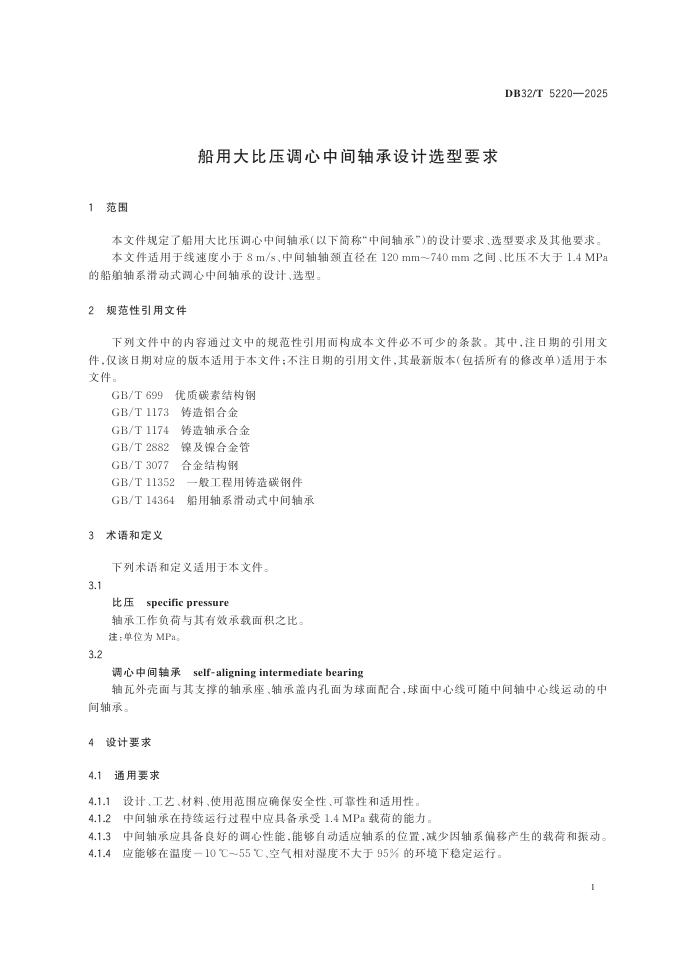 DB32/T 5220-2025 船用大比压调心中间轴承设计选型要求
