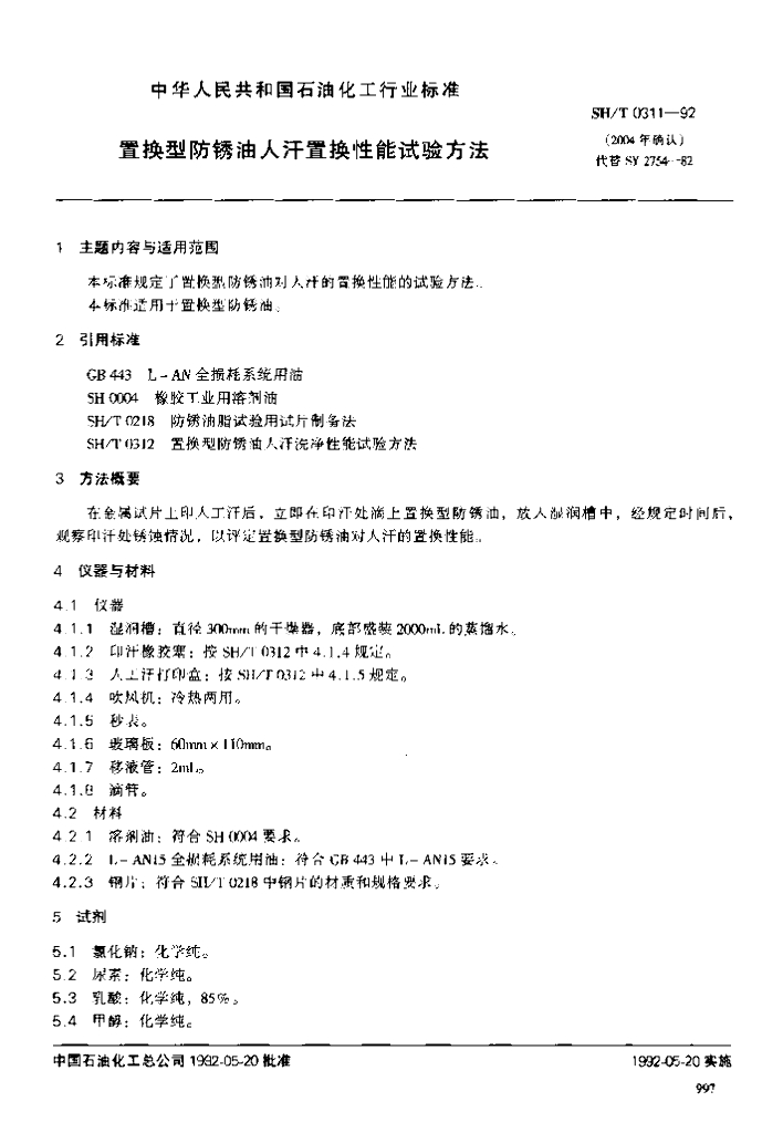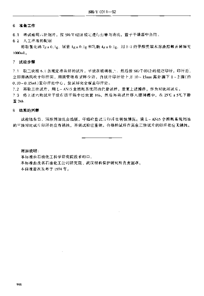 SH/T 0311-1992 置换型防锈油人汗置换性能试验方法