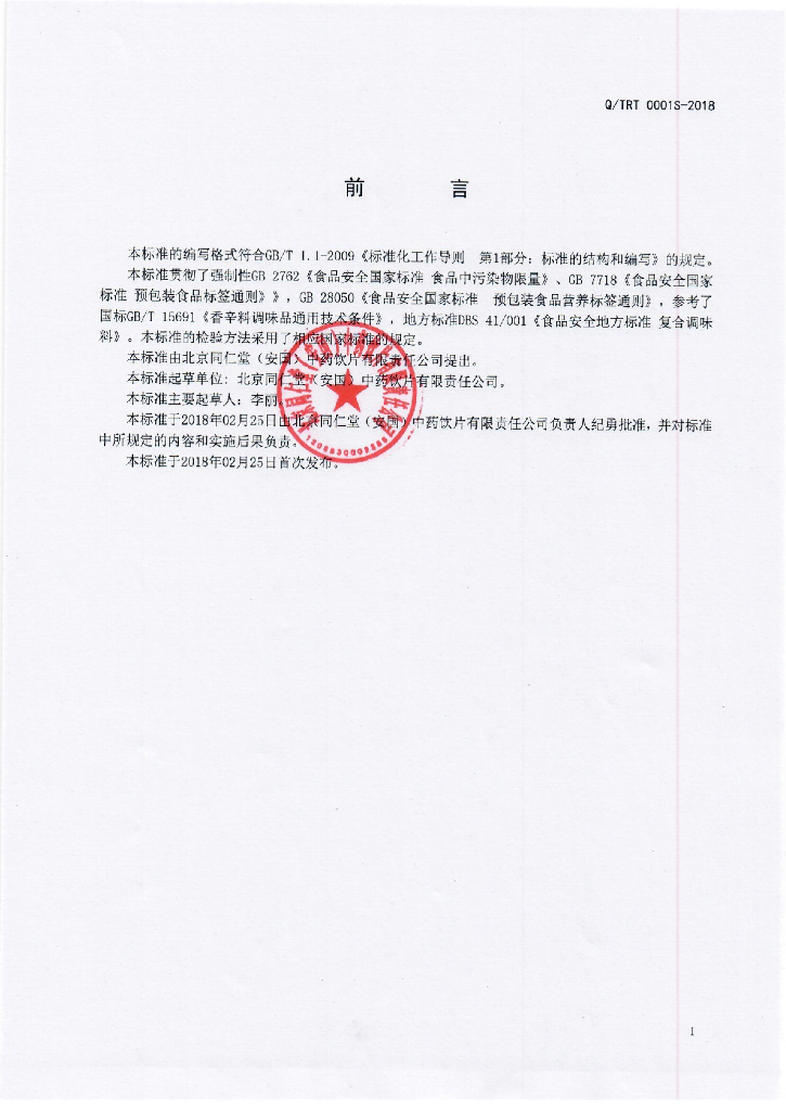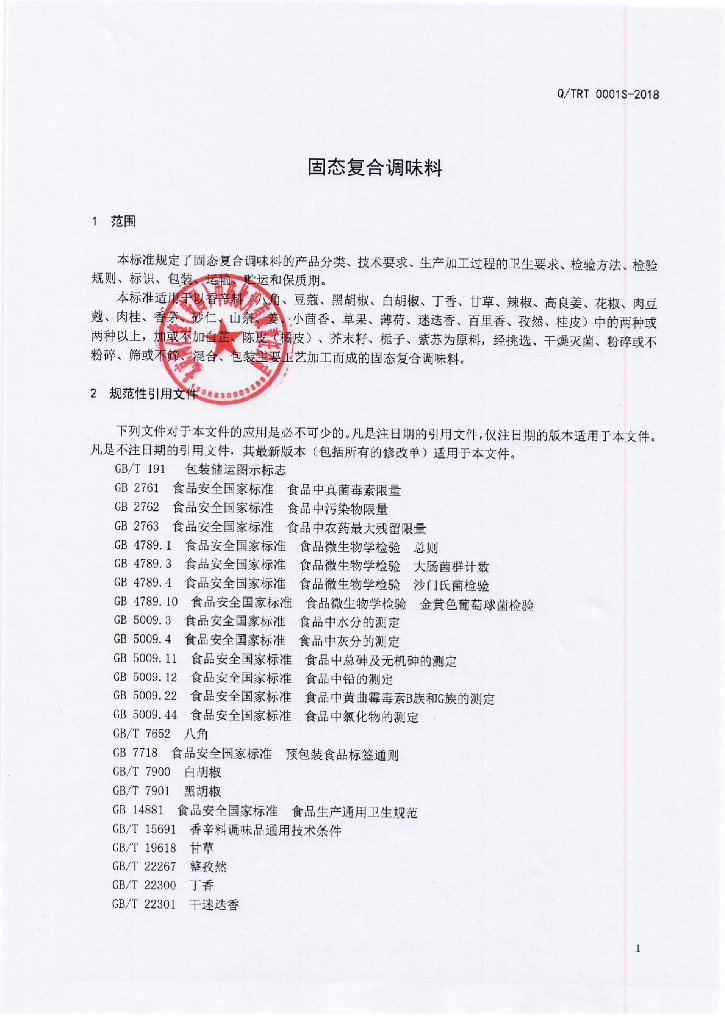 Q/TRT 0001S-2018 固态复合调味料