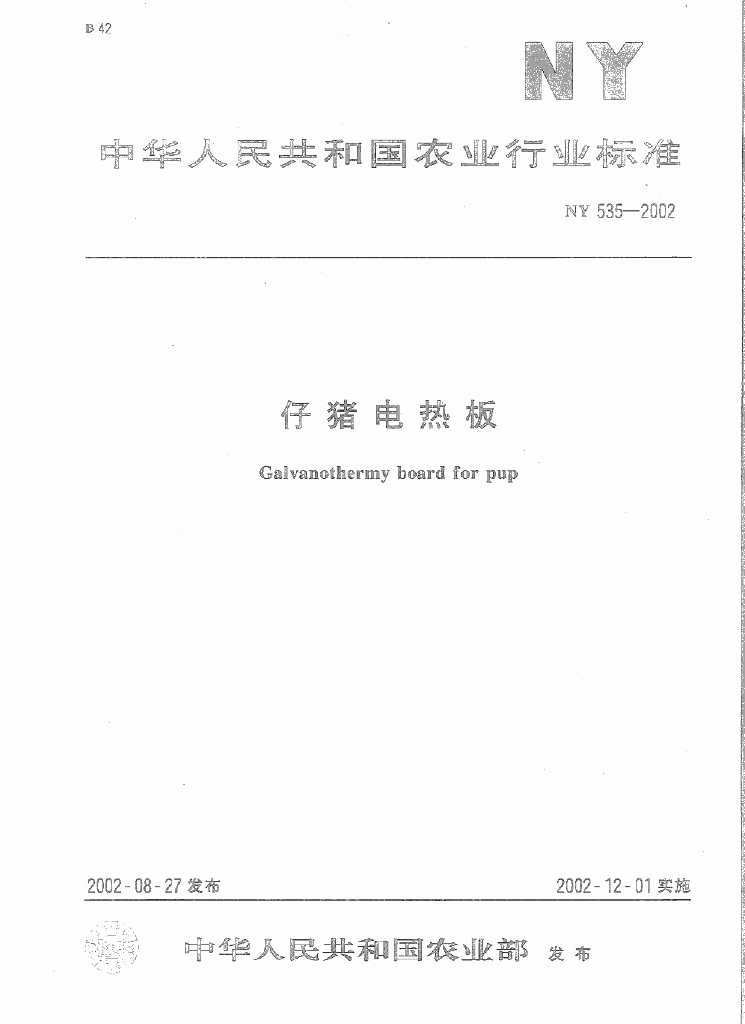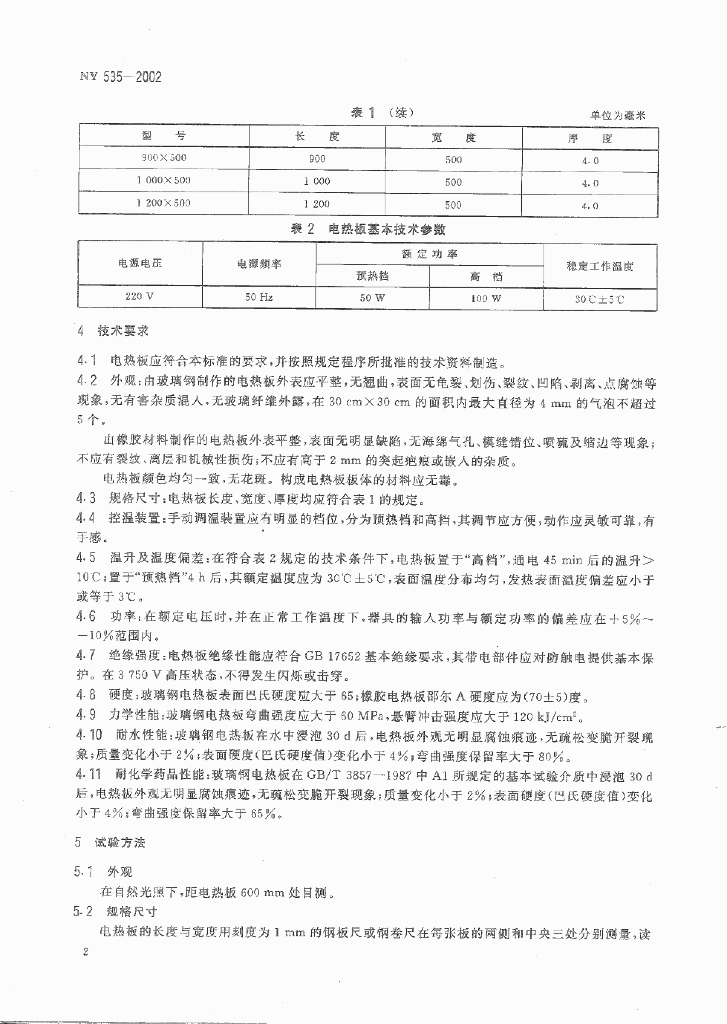 NY 535-2002 仔猪电热板