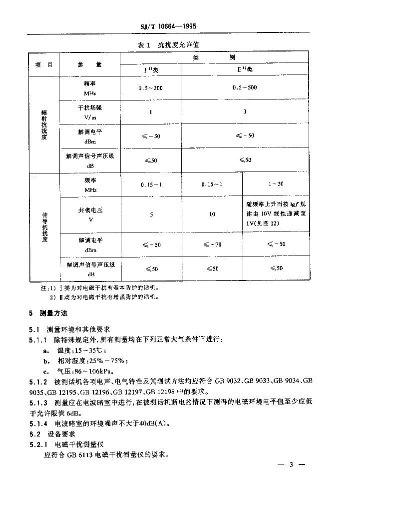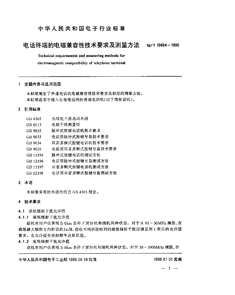 SJ/T 10664-1995 电话终端的电磁兼容性技术要求及测量方法