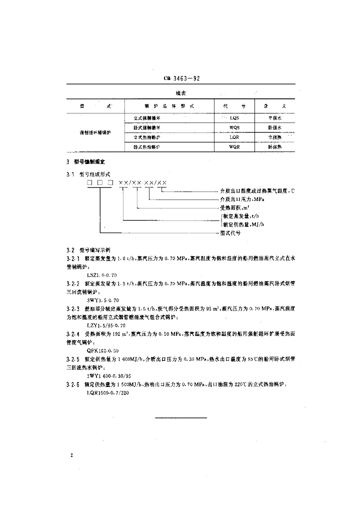 CB 3463-1992 船用辅锅炉型号编制方法