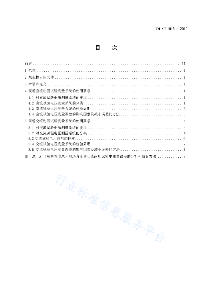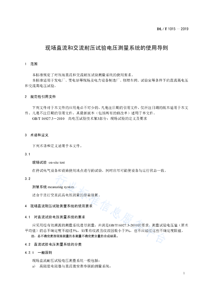 DL/T 1015-2019 现场直流和交流耐压试验电压测量系统的使用导则