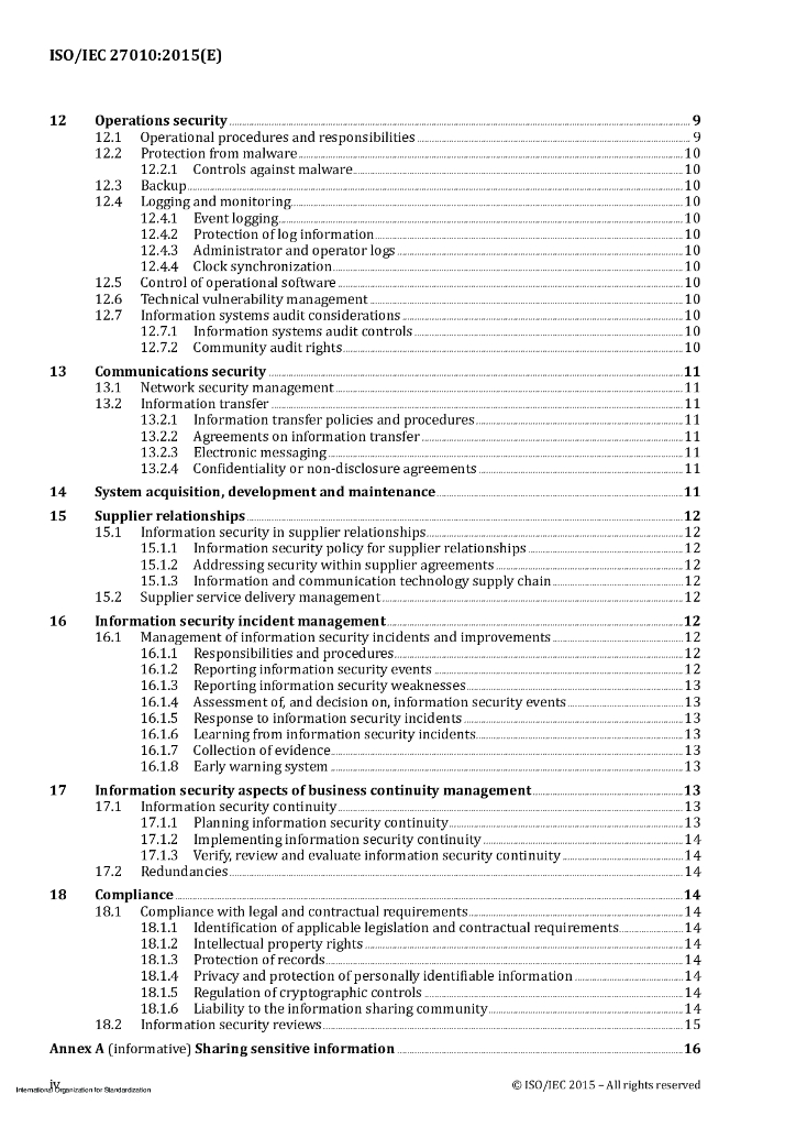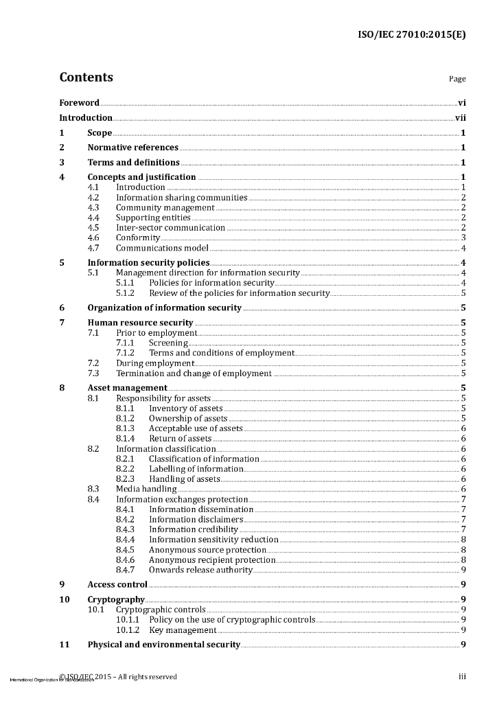ISO/IEC 27010-2015 信息技术 安全技术 部门间和组织间通信的信息安全管理